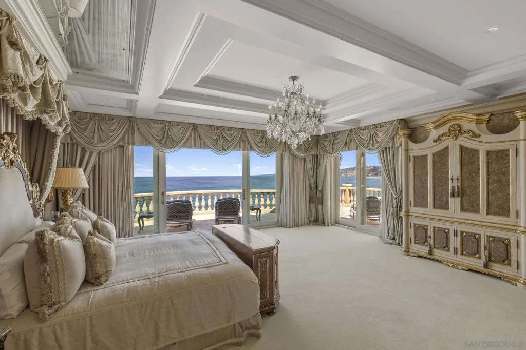 The Sand Castle is La Jolla’s most iconic waterfront jewel and includes one of the only on-property private beaches in California. A stunning homage to the finest manors on the French Riviera, the inspired and meticulous elegance of the Main House, Guest Residence and expansive grounds provides magnificent living while honoring extraordinary unobstructed views of the Pacific and coastline to the west, north and south. European and bespoke interiors and exteriors perfectly meld with modern conveniences, deftly designed and curated by global interior design icon, Timothy Corrigan. A tone-on-tone palette mirrors the sea and sky while continually orienting the visitor towards the home’s dramatic ocean views. No expense was spared in creating The Sand Castle. Multistory, manicured hedges cocoon the property, and upon entry through the magical courtyard and grand front hall, one is called to the water. Private and secure, luxurious and serene, The Sand Castle evokes the most sumptuous of grand hotels, with solid gold gilded rooms, a Thassos-tiled salt-water pool, extensive terraces and patios, an elevator, two marvelous cabanas, fitness center, spa, bespoke statues and chandeliers, firepit, boat bar, and a host of private spaces in which to observe the rolling waves and experience dramatic sunsets. The Sand Castle is truly one-of-a-kind and can never be replicated.