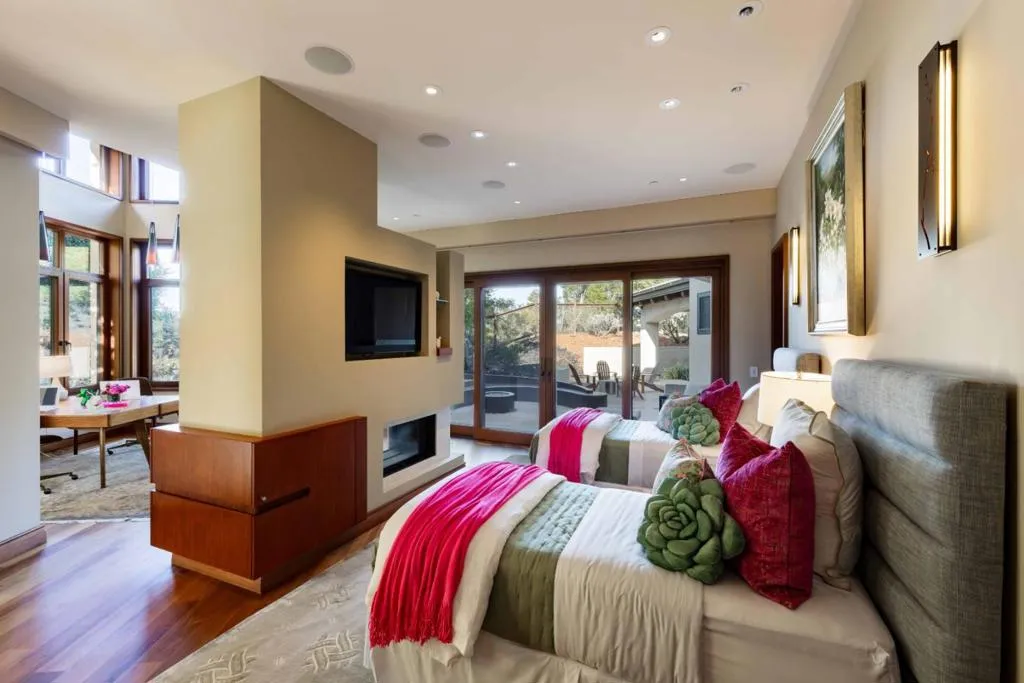 This stunning residence of 20,982 sq. ft. rests on more than 8 acres of resort-like grounds. Globally-inspired architecture, flawless construction by an award-winning builder, the finest materials, finishes, and technology, and exquisite interior and landscape design, create spaces that are inspiring and comfortable. From its sumptuous master suite, supremely appointed kitchens, and indoor pool under retractable skylights, to its 15-seat theater, 3,000-bottle capacity wine cellar, and comprehensive home automation, this remarkable haven offers every conceivable amenity. A separate office structure is amply outfitted to host executive-level meetings and serve other business needs. This prestigious estate is surrounded by verdant views and is just minutes from all the major Silicon Valley tech companies, Sand Hill Road VCs, top-10 ranked California schools, major airports, and central to the best of Bay Area attractions.