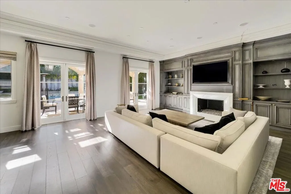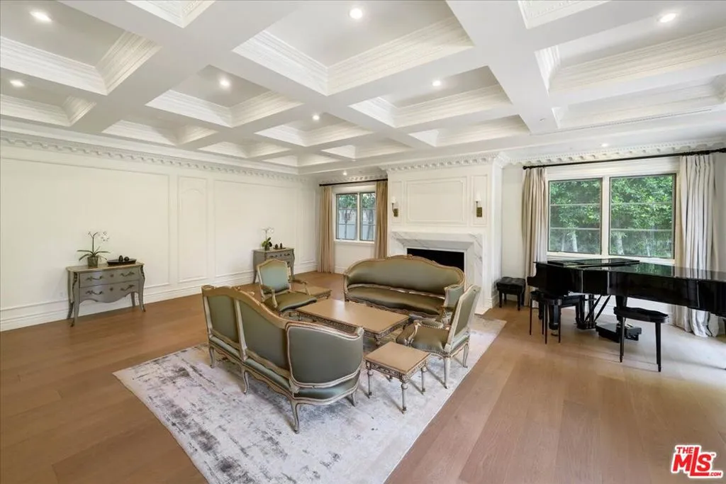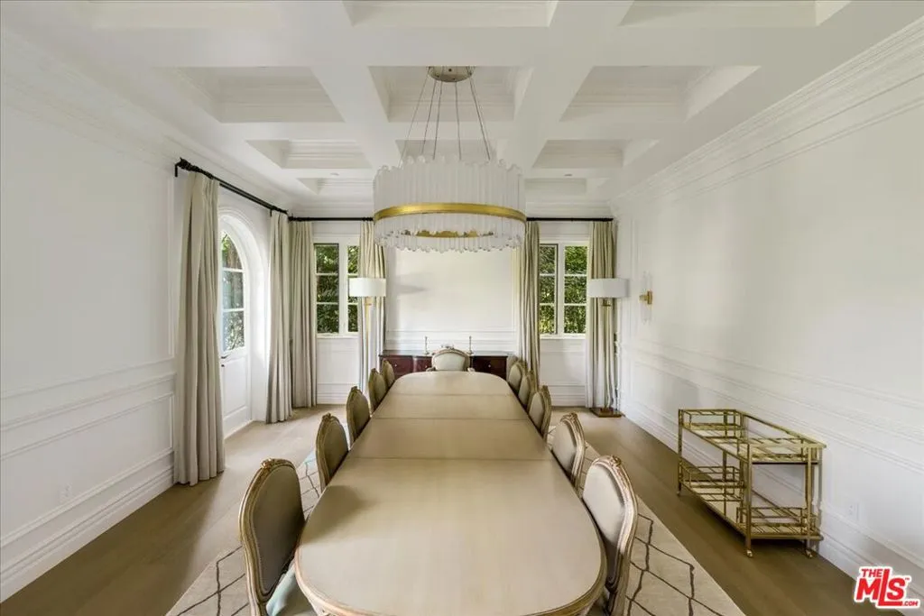 This timeless Beverly Hills estate embodies the perfect blend of modern sophistication, luxury, and family warmth, set on an expansive 22,418 sq ft lot in the heart of the prestigious Flats. Behind gated entrances and a grand half-moon driveway, you’re greeted by manicured gardens and a striking two-story foyer with a dramatic dual staircase and crystal chandelier, a breathtaking first impression. Boasting 7 bedrooms, 10 bathrooms, and over 11,000 sq ft of exquisitely designed living space, the estate offers designer-done interiors featuring a marble-clad gourmet kitchen with top-of-the-line appliances, custom cabinetry, and a sunlit breakfast nook overlooking the backyard. The formal dining room, with its coffered ceilings, offers an elegant setting for hosting. The living room boasts bespoke built-ins, a grand fireplace, and seamless access to the outdoors, while an inviting family lounge combines comfort and style. For leisure and wellness, this home offers a climate-controlled wine cellar, a state-of-the-art gym, and a luxury spa with a sauna and steam room. An immersive golf simulator room adds a unique touch of entertainment. The primary suite is a sanctuary of tranquility, complete with dual spa-like bathrooms, expansive closets, and serene views of the gardens. The resort-style backyard is an entertainer’s dream, featuring a sparkling pool and jacuzzi, an elegant covered outdoor dining pavilion, and a cozy outdoor lounge with a grand fireplace perfect for both intimate family moments and grand-scale entertaining.With a 10+ car garage, this home caters to car enthusiasts while ensuring privacy and security. Located just moments from world-class dining, shopping, and top-rated schools, this estate isn’t just a residence-it’s a masterpiece of refined living, where timeless elegance meets modern comfort and family warmth.