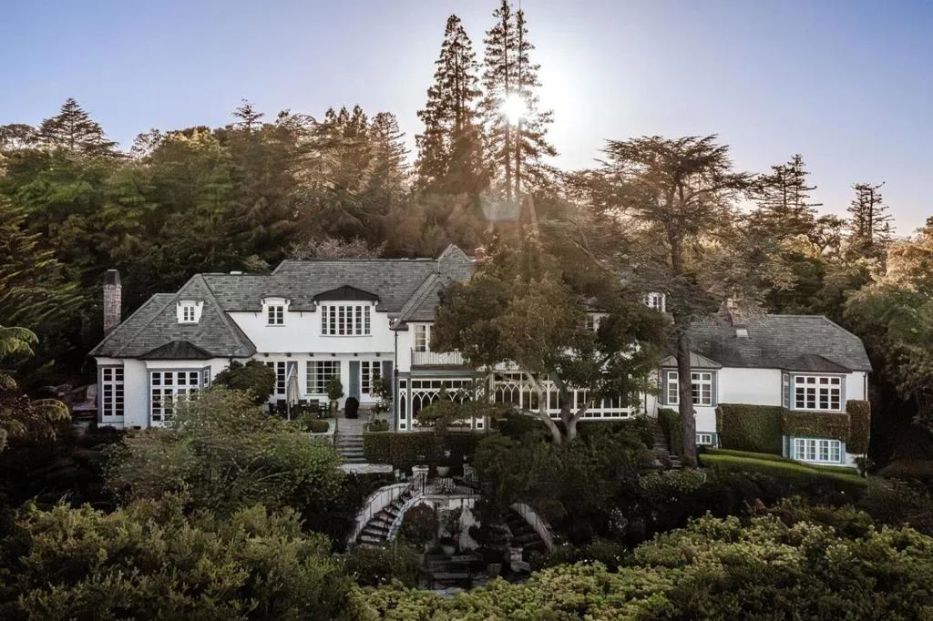 Situated on a private side street, this grand estate sits on a majestic 2-acres with jaw-dropping panoramic bay views, some of the best in all of Hillsborough. Exquisite architectural detailing and finishes throughout, including inlaid parquet walnut floors, hand carved fireplaces, and walls of glass framing iconic bay views and landscaping. The main level includes a stunning office, billiard hall, and the “Morocco Room” lounge. Upstairs, the large master suite enjoys equally stunning views of the bay, in addition to a luxury spa bath and formal sitting room. A separate in-law suite and wine cellar with tasting room are located on the lower level of the residence. Equally impressive are the surrounding grounds, fully landscaped with grand-scale trees, expanses of manicured lawn, and an elevated terrace overlooking the views and swimming pool. All of this just minutes from shopping, dining, golfing, parks, and top rated Hillsborough schools. (Square Footage Per County Records: 8,629)