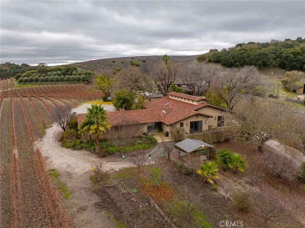 The charming two-story barn-style guest house, built in 1981, spans 2,210 +/- sf with granite counters, wood cabinets, and hardwood flooring. The upper level comprises an open living area, kitchen, den, half bathroom, primary bedroom, and primary bathroom. Downstairs, the spacious garage area, utility room, half bathroom, and workroom provide additional functionality. Adjacent to the breezeway, guest quarters feature a living area, two bedrooms, and one three-quarter bathroom. A solar system covers both the main and guest homes and the domestic well, reducing energy costs. There are also 60 Arbequena Spanish Olive trees that produce great olive oil. Vineyards, mesmerizing views, a prime location, privacy, an estate home, a retreat—this property encapsulates it all. Seize the opportunity to own this extraordinary property today; it’s a once-in-a-lifetime chance you won’t want to miss!