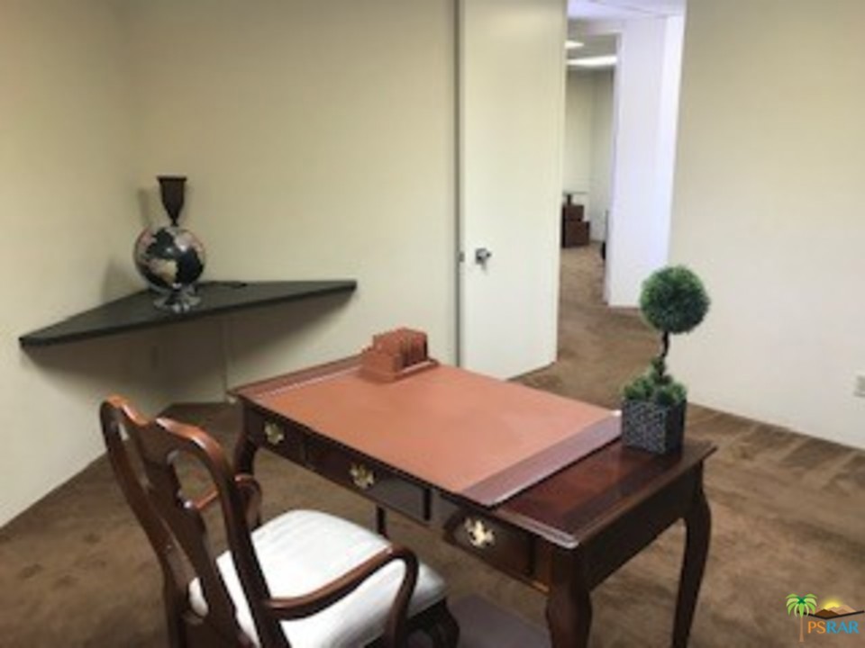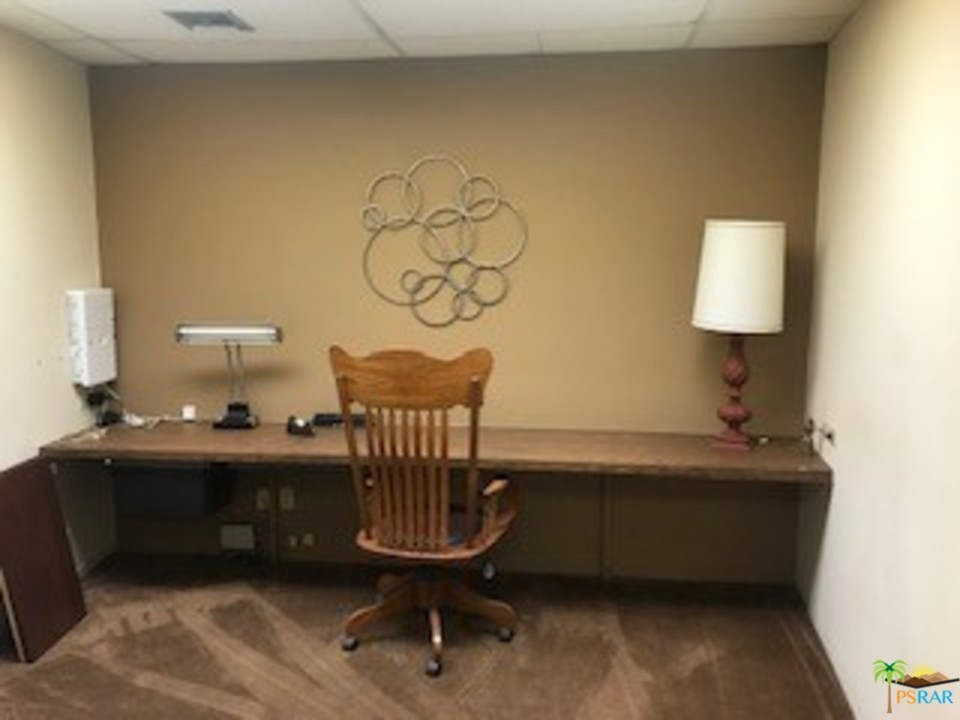 Small office approximately 225 sq. ft. seperate from other offices upstairs. One unit downstairs, 500 sq. ft. with private restroom. $800. Other office available is 1075 sq. ft for $1000 a month. Security gates upstairs and cameras. Hwy 111 frontage. Great tenants occupy building. Extra parking in back. Offices can be rented fukrnished for extra per month. Landlord pays utilities and maintenance.