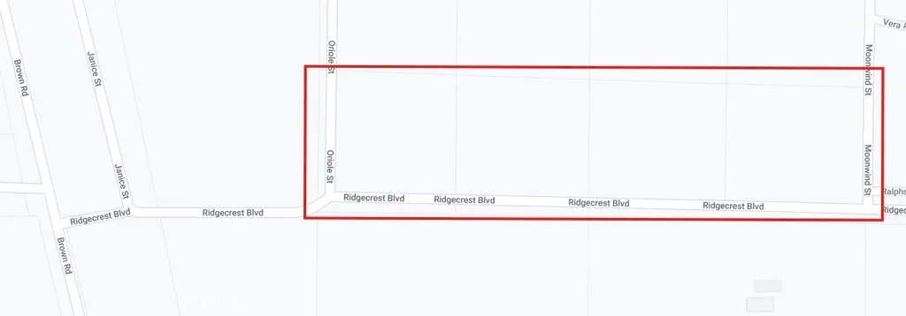 Gorgeous approximately 9.88 acres with amazing views. Great acreage, all flat and useable, with great access on three sides. An entire corner of a block in scenic Inyokern. Minutes away from Ridgecrest. Outstanding views of the foothills of the Sierra Mountains. Great area and neighborhood go look to appreciate many nice homes in this area, very close to hwy 395. Excellent for all Sierra activities, Lake Isabella, national parks, Mammoth mountain all nearby. Power about 500-600 ft away, water and gas on Oriole st a few parcels over. Sale is for Four adjoining parcels approx 2.47 acres each, 084-263-30-00-6, 084-263-31-00-9, 084-263-34-00-8, 084-263-35-00-1. A little less than a quarter mile long by about 339 feet wide. Put your own home then sell the remaining parcels, or create your dream Ranch. All 4 must sell together. Any depictions of lot lines are visual only, buyer to verify boundaries by legal survey if desired. Buyer to verify all uses, utility, zoning with Kern County and utility providers. Two of the parcels have metal stakes that may depict lot lines, but seller is unaware if they were legally surveyed in the past. GPS: 35.623095245720506, -117.80291959725048