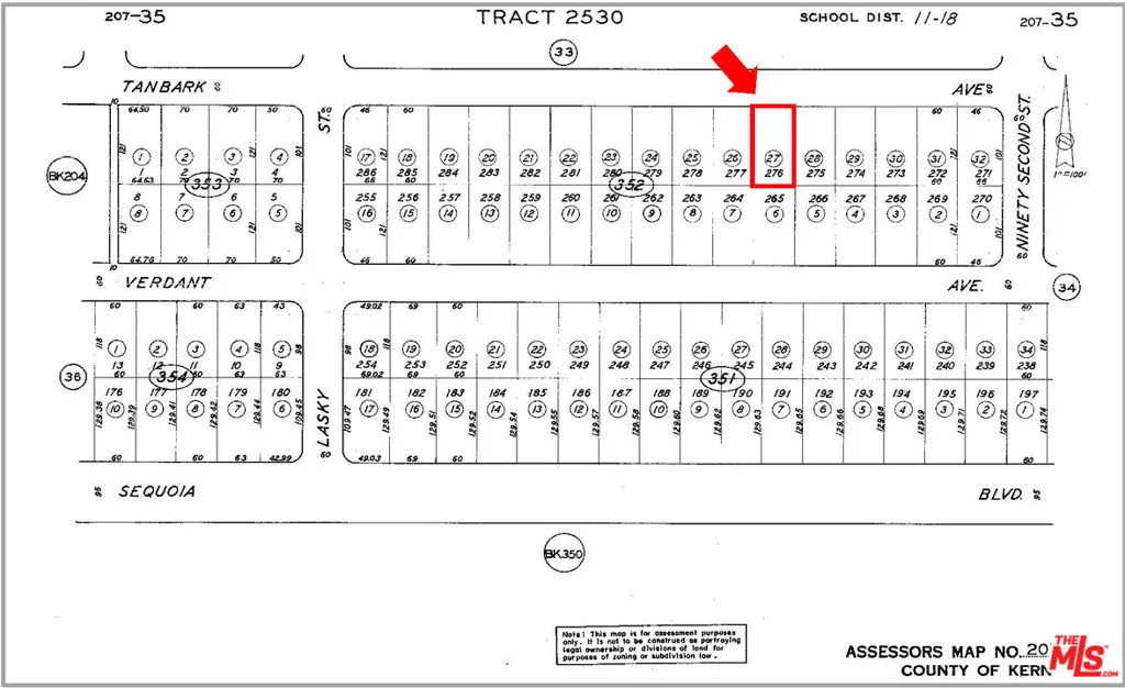 This is Lot Number 276, Tract 2530, Sequoia Estates, in California City with 8-INCH City Main Water. Total of 11 Single Family LOTS Available. Can Buy or Lease with Option to Purchase From 1 to All 11 Lots. Build Your Dream Home. Ideal for Builders, Developers, and First-Time Homeowners. Near Schools, Houses of Worship, Stores, Freeway. Zone: R-1, Size: 7,260 Square Feet, 60 x 121, Flat, APN: 207-352-27, Coordinates: 35.098426, -117.968270.
