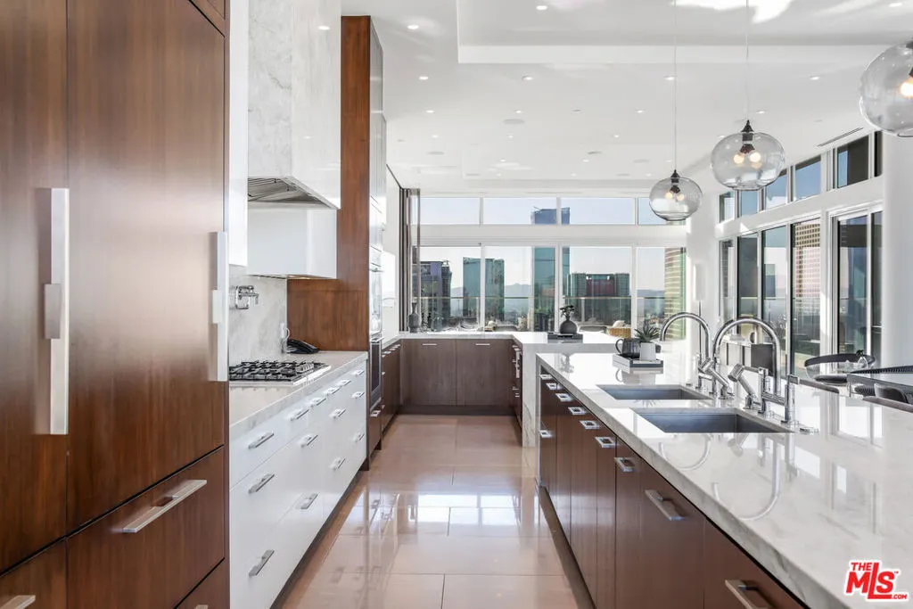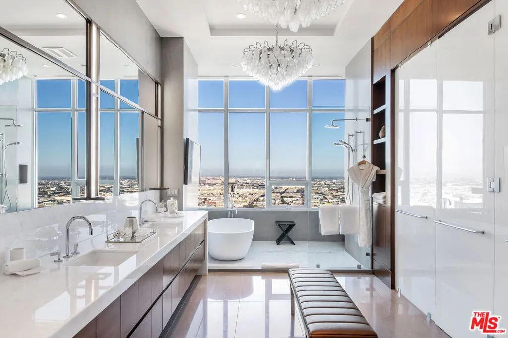Luxury living at its Finest. Welcome to an unparalleled experience in this magnificent two-story penthouse nestled atop LEVEL’s prestigious luxury tower in the heart of Downtown Los Angeles. Boasting 13-ft floor-to-ceiling windows, revel in breathtaking 360-degree views of the city skyline and beyond. Indulge in the epitome of opulence with this fully-furnished residence featuring two formal dining rooms, an expansive great room, a stylish lounge complete with a full bar, and not one, but four separate kitchens, each adorned with top-of-the-line Wolf and Sub-Zero appliances. Step outside and be enveloped by 8,000 sqft of extraordinary outdoor living space, perfect for entertaining guests or simply enjoying the panoramic vistas in absolute privacy. Entertain with ease as this home transcends luxury with its array of exceptional features. On Level 1, marvel at two wine rooms showcased behind 10-ft glass walls, while an automated media room beckons with seating for fifteen. Ascend to Level 2 and discover your own private oasis, complete with a lavish 50-ft rooftop pool, a serene sundeck, a luxurious twelve-person spa, a rejuvenating steam room, an expansive outdoor dining area for fourteen, state-of-the-art BBQs, a cozy fire pit, and a stylish lounge area. Luxury amenities abound with butler services, 24-hour concierge, valet and individual assigned parking, housekeeping services, and exclusive access to 37,000 sqft of residential building amenities. Don’t miss this rare opportunity to reside in the pinnacle of luxury living in Los Angeles. Experience the ultimate in sophistication, comfort, and convenience in this extraordinary penthouse retreat.