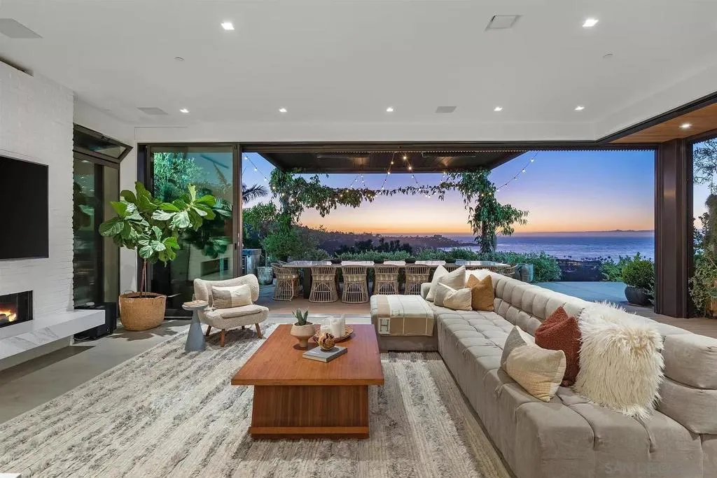 ONLY AVAILABLE FOR THE SUMMER. 1 WEEK AT A TIME OR THEN ENTIRE MONTH OF JULY.. Indulge in world-class escape to a realm of opulence and natural splendor in this unparalleled 6-bedroom, 8-bathroom estate, majestically poised above picturesque La Jolla Shores. Offering a symphony of architectural brilliance and refined elegance, this residence stands as a testament to the pinnacle of luxury living with unmatched, 220 degree views of the coastline. Amenities abound with the expansive outdoor paradise, gym and meditation sanctuary, inspiring home office, smart home technology, a chic teen lounge, and more. Every aspect of your stay at Vista d’Oro is meticulously curated to surpass expectations. ONLY AVAILABLE STARTING JUNE 28TH UNTIL JULY 28TH. SEASONAL FURNISHED RENTAL 7 NIGHT MIN Zen-like tranquility awaits as you step through the grand entryway and lounge-like living space, where warm, organic materials meld harmoniously with European sophistication. Complete with stunning bar, this stylish room leads to a wall of glass that unveils a captivating panorama of the boundless ocean beyond. With ceilings that reach for the heavens, a stunning staircase and a captivating catwalk bridge that gracefully links both wings of the abode, every detail exudes a sense of timeless magnificence. The gourmet kitchen is a masterpiece of culinary artistry where professional-grade appliances, top-tier finishes, a large island with breakfast bar, plus dining table for 8 guests, converge to elevate every gastronomic endeavor. Whether hosting a private chef affair or relishing in intimate family gatherings, the main kitchen seamlessly melds with a rear kitchen, ensuring no desire is left unfulfilled. Adjacent, the family room beckons with plush seating, a large flatscreen TV, ambient fireplace, and walls that fully open to the spectacular outdoor oasis. Gaze upon the expanse of the Pacific Ocean and take in phenomenal sunsets with seamless indoor/outdoor living. Step outside onto a jaw-dropping deck adorned with lush landscaping that rivals the grandeur of a five-star resort. Here, an infinity pool glistens under the sun’s radiant embrace, while a bubbling spa offers serenity and rejuvenation. Lounging upon sun-kissed day beds, you’ll be captivated by the breathtaking ocean vistas that stretch to the horizon. As evening descends, gather around the flickering fire pit or dine al fresco (seating for up to 12 guests) beneath the enchanting glow of market lights, enveloped in the gentle sea breeze. Additional amenities include a full-scale outdoor kitchen with BBQ, large, lit grassy soccer field, multiple lounge seating spaces with views, and outdoor shower with a serene bohemian vibe. Not to mention, there is a dedicated gym and meditation sanctuary for guests to find their center. Retreat to the sumptuous embrace of the primary suite, where a king bed, walk-in closet, and en-suite bathroom awaits amidst a backdrop of coastal splendor leading you out to a private balcony with forever vistas. Walls of glass frame panoramic coastal views, while the fireplace sets the stage for evenings of enchantment. Revel in the lavishness of the spa-like bathroom complete with dual vanities, a glass-enclosed shower, and standalone soaking tub. Step outside to your private outdoor shower and barrel tub that invites indulgence beneath the open sky. Each additional bedroom suite throughout the residence boasts an ensuite bathroom adorned with glamorous accents, ensuring that every guest enjoys the utmost in comfort and refinement. Elevate your once-in-a-lifetime vacation to the zenith of coastal luxury and embark on a journey of unrivaled sophistication in La Jolla. SLEEPING ACCOMMODATIONS (Maximum: 16 Guests) Upstairs: Bedroom 1 (Primary Suite): 1 King bed Bedroom 2: 1 King bed + 1 Queen bed + 1 twin trundle Bedroom 3: 1 Queen bed + 1 twin trundle Bedroom 4: 1 Queen bed + 1 twin trundle Downstairs Bedroom 5: 1 Queen bed Bedroom 6: 1 Queen bed