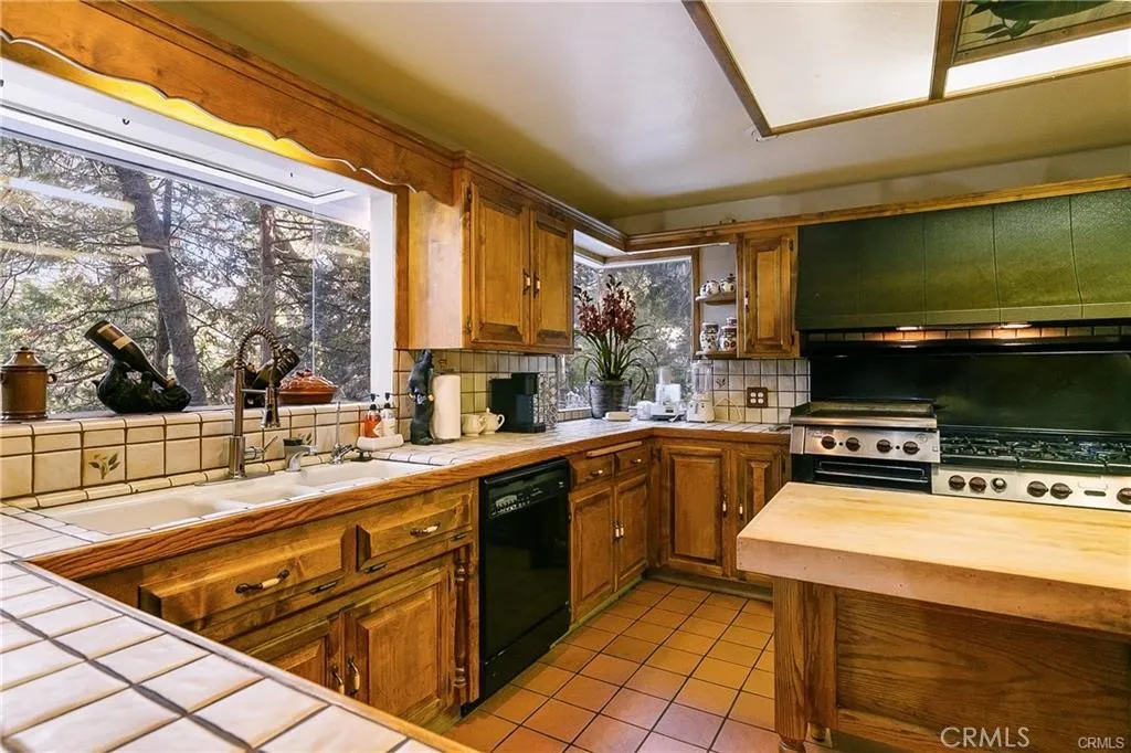 Step inside and instantly feel the warmth of this inviting mountain retreat. The grand foyer leads to a spacious living area, featuring a cozy brick fireplace, T&G ceilings, neutral walls, and wood flooring that flows seamlessly into the dining area. The kitchen boasts rustic wood cabinetry, a butcher block island, and a charming retro oversized stove, with an adjacent laundry/pantry room for added convenience.