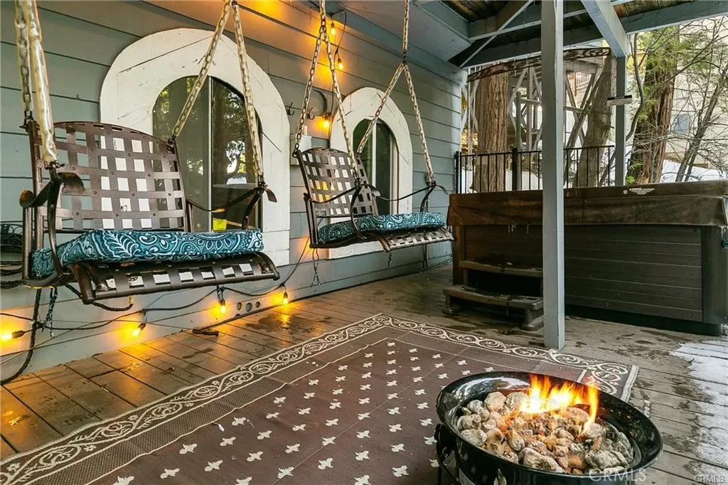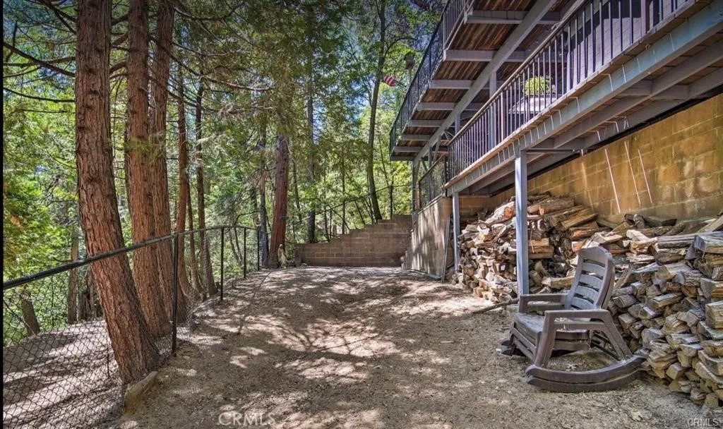 Downstairs, the entertainment room is the perfect gathering space, complete with a bar area and a wine cellar. The outdoor areas are equally impressive, offering multiple spaces for entertaining and soaking in the breathtaking forest scenery. The partially fenced yard adds to the home’s privacy and charm.