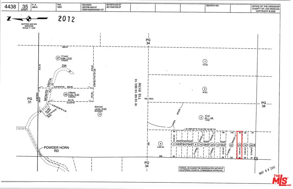 Good investment but no access to land, This Malibu land located in heart of Topanga North of Pacific Coast FWY 1 and South of FWY 101 the Topanga Canyon runs North and South needs road to access the land located in the very high quality view and air a lots of celebrities properties good future investment. Buyer must pay for escrow fees and closing cost and pays delinquent tax about $4000 on the property. More info such as water, power, map, location go to Los Angeles office planning at: 320 W. Temple St. Los Angeles CA 90012 phone 213-974-6411