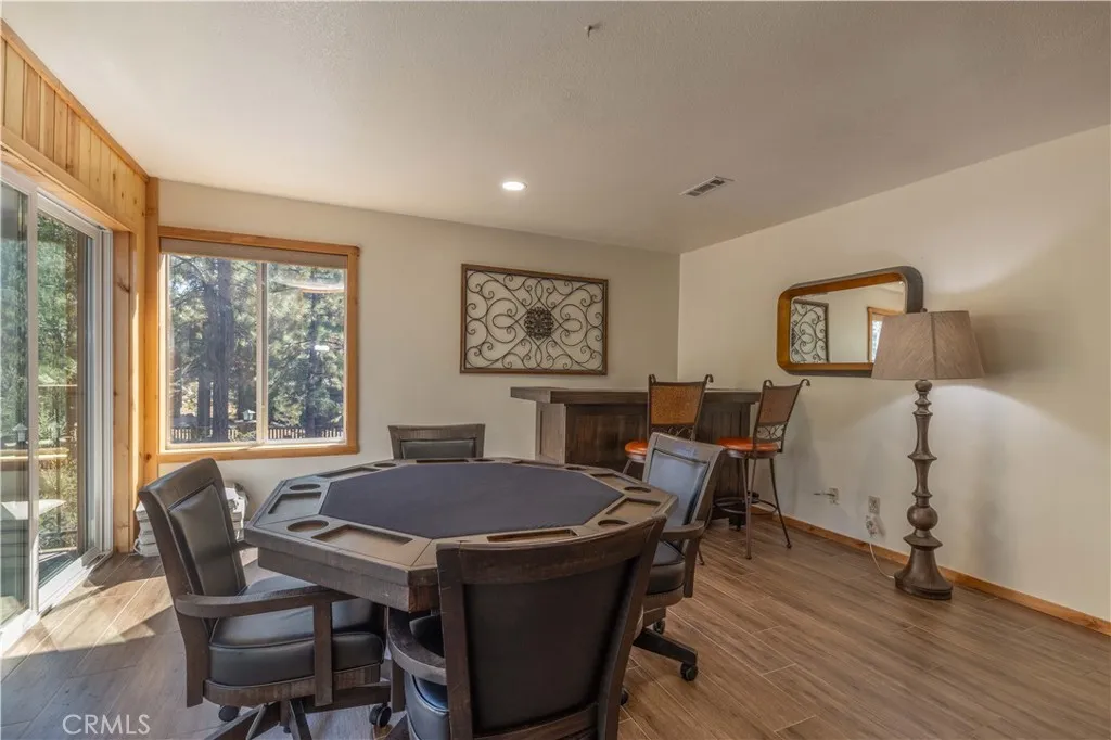 HOME BACKS TO A PERMANENT OPEN SPACE EASEMENT!! TRANQUILITY, PRIVACY & LUXURIOUS LOCATION is probably the best way to describe this home!! Home is located in one of the best neighborhoods in the whole Big Bear Valley- EAGLE MOUNTAIN ESTATES!!! Home features 5 bedrooms ( each bedroom has its own bathroom ) and 8 bathrooms which allows many possibilities for large crowds for their convenience and enjoyment. Tile flooring throughout for more durability and resistance. Log accents throughout make this home look and feel like a true cabin in the woods!! Enjoy your cup of coffee from the deck enjoying the very nice scenery with the utmost peace and quiet. This home is one of a kind, don’t wait too long, it won’t last!!!!