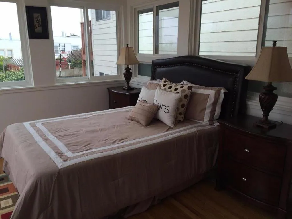 Remodeled 1818 sqft 5 bedroom, 4 full bathroom home near Balboa Park BART Station! Upper: 3 bedrooms, 2 full baths, kitchen/dining combo, living room, hardwood floors, & rear deck out from master bedroom w/ wide city views. Lower: 2 bedrooms, 2 full baths, 1 media room, & large storage room, w/ permits. Separate entrance on ground floor. Double-pane windows. New appliances. Close to freeway, transportation, shopping, banking, restaurants & more on Mission St & Geneva Ave!