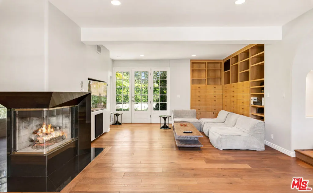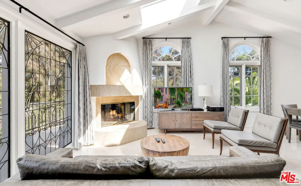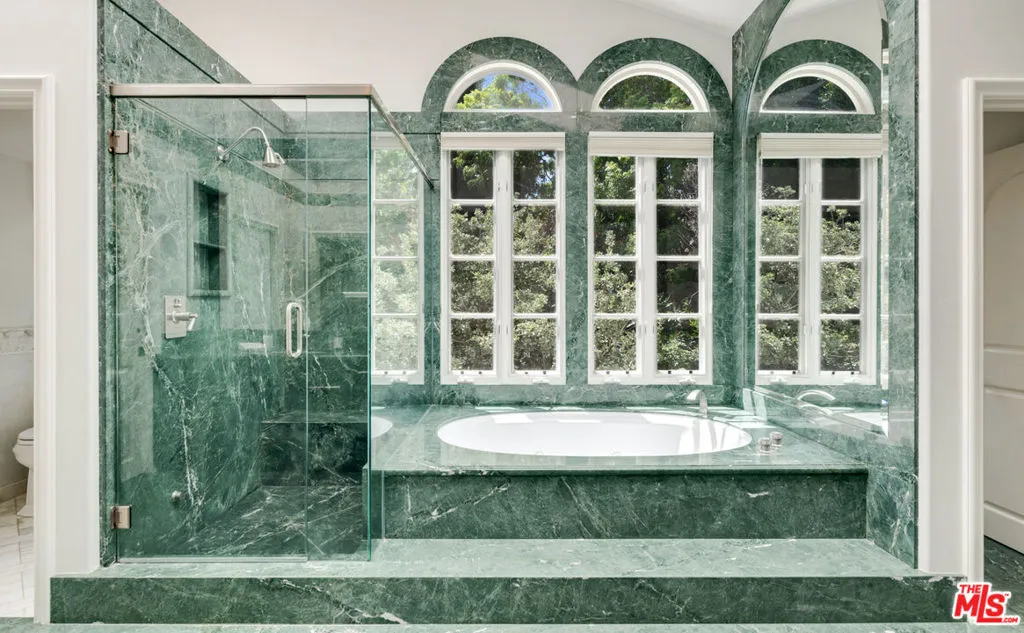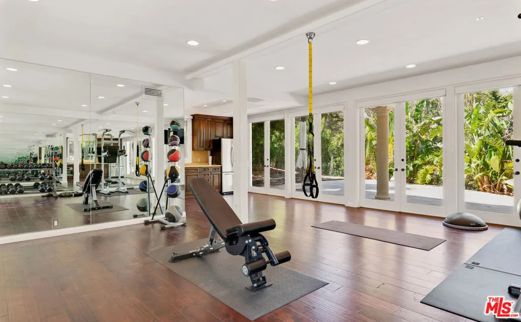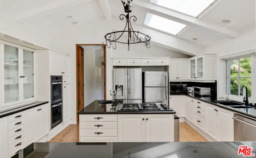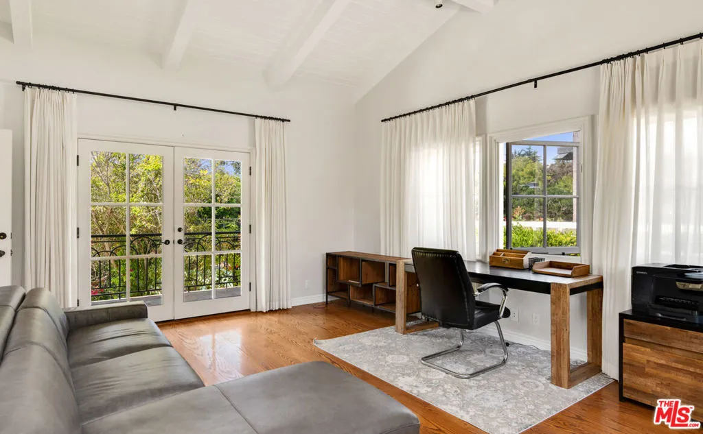 This gorgeous, resort-style Mediterranean estate is elegantly updated and meticulously maintained for a lifestyle of luxurious comfort includes beach rights to private sandy coves just minutes away. In a garden setting of more than 1.3 acres, this very private, quiet residence is both serene sanctuary and entertainers delight. Exceptional detailing creates an atmosphere of elegance highlighted by vaulted ceilings, arched doors and windows, wide-plank hardwood floors, and abundant views onto luxuriant landscaping. With dual gates offering convenient access, the home is surrounded by expansive lawns and manicured grounds, including numerous tall palms and fruit trees. From the front drive, symmetrical double staircases lead up to the pergola entry and soaring art-glass front doors. The welcoming foyer steps up into a grand-scale living/dining great room, complete with high, coffered ceilings, skylights and clerestory windows, a wide stone fireplace, built-in display shelving, and lustrous wood floors. From the dining area, French doors open into the chandelier kitchen, which has skylights, black granite countertops, stainless appliances, bar seating, and a bright, spacious breakfast room with huge windows and French doors to a wraparound balcony. Adjacent to the kitchen is a large family/media room, a bedroom, and a full bath. A hallway off the living room leads to the elegant owner’s suite, which has a fireplace sitting area, two balconies, a huge dressing area and a vanity that could be a private writing desk, plus a stunning green marble bath with dual fixtures. Just outside the owner’s suite, a staircase leads to a loft with a Juliet railing overlooking the living room. This lovely space, which could be an office or sitting area, opens to another balcony. On the home’s lower floor, there is a huge entertainment room with built-ins, a wet bar, and doors to the backyard, plus an enormous temperature-controlled wine cellar. There are four additional bedrooms on this level as well as a laundry room. The resort-like grounds feature a sunken patio with an outdoor kitchen/barbecue and dining area, a beautiful pool and spa with generous deck space for lounging, and a lighted north/south tennis court. The drive from the front of the house leads all the way through the property to the very private guest house, which sits among verdant plantings. The lower level of this two-story structure is a large gym with hardwood floors, mirrored walls, recessed lighting, TRX hookup, and a kitchenette. There is also a laundry room and a full bath. On the upper level is a skylight living/dining room with a large fireplace, windows on three sides, plus a kitchenette and a spacious bedroom suite with a private balcony. The estate has a three-car garage, plus ample guest parking. This remarkable property, exquisitely updated, offers Point Dume living at its most luxurious.