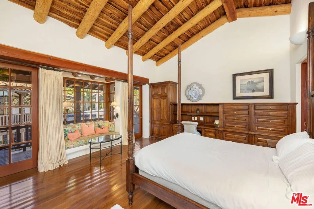 The Hacienda. Welcome to this move-in-ready Spanish timeless masterpiece, a true pinnacle of Spanish country architecture and design. Perched on a sprawling 2-acre corner lot in the exclusive Ashley Ridge section of the 24-hour guard-gated Hidden Hills, this Wallace Neff inspired custom California-style Hacienda spans approximately 9,402 square feet of unparalleled craftsmanship and elegance. Nestled in total privacy and serenity, this stunning estate seamlessly blends indoor and outdoor living, centered around a picturesque 2-story fountain courtyard perfect for hosting dinner parties and gatherings. The grounds feature covered outdoor spaces, a swimmer’s pool and spa, and a beautifully manicured lawn ideal for play or relaxation amidst mature trees that attract songbirds and pollinators, enhancing the tranquil ambiance. The main residence offers six luxurious bedrooms, including an enormous primary suite, or an optional five en-suite bedrooms and a library/office, along with seven baths. Highlights include a dramatic, wood-beamed 2-story great room, a cozy theater, a large formal dining area, and an open, light-filled chef’s kitchen equipped with top-of-the-line stainless steel appliances. A family room with an adjacent butler’s pantry and a mudroom/laundry room complete the home’s functional yet luxurious layout.The property’s extensive amenities extend to a 2-story guest house, which includes a living room, dining area, second kitchen, second washer/dryer, steam shower, powder room, two fireplaces, and an upstairs en-suite bedroom with a hotel-style bath and covered outdoor veranda.Designed for ultimate entertainment and leisure, the estate boasts a newly resurfaced North/South tennis court with stadium seating (convertible into four pickleball courts), a vineyard with 200 mature cabernet vines yielding approximately 300 bottles of wine annually, and a charming tasting gazebo with breathtaking mountain views. A pub-style bar with commercial refrigeration and an adjacent subterranean wine cellar further enhance the lifestyle this estate offers. Car enthusiasts will revel in the private auto motor court featuring eight bays, including a 5+ car garage, workshop, and storage bays. Throughout the home, timeless details abound: seven fireplaces, vaulted truss and lodgepole high ceilings, beveled glass doors, dual-glazed windows, solid hardwood, and paver flooring, showcasing its meticulous design and craftsmanship.Experience the exclusivity of Hidden Hills with its vibrant community events, including a weekly farmer’s market, summer BBQs, musical theater, and more. This property is a rare gema fully furnished, one-of-a-kind Spanish masterpiece offering unmatched privacy, timeless elegance, and world-class amenities. There is truly nothing like it among the grand estates of Hidden Hills. The Rental Property Owner seeks a long term lease agreement only. RPO prefers a 2 year lease minimum but may possibly consider 18 months.