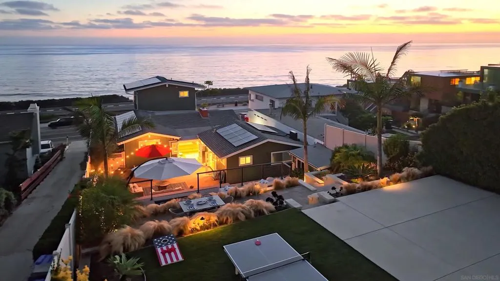 Enjoy the dream beach vacation in your very own resort style beach house, fully equipped with 2 levels of direct ocean views & indoor/outdoor living at its finest with 3 sunset view decks and fully fenced 5-level backyard with heated pool, hot tub,Ping pong table, casita, basketball half court, grill, and grassy lawn! Beautifully situated between San Elijo & Swami’s surf/swim beaches, this gorgeous 4bd + 3ba offering also features unobstructed sunset views from nearly all rooms, a/c, fire pit, beach gear, garage parking for 4 cars on site. Come experience the Southern California dream in this incredible house close to everything!