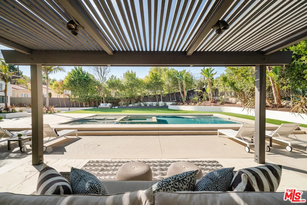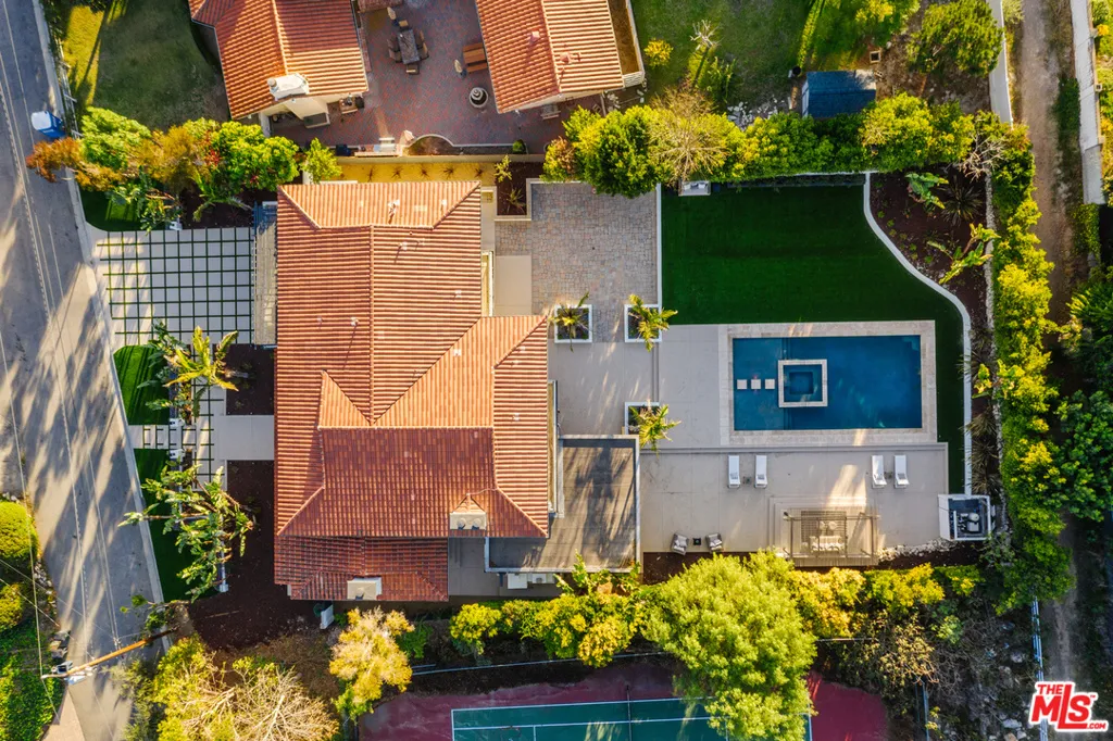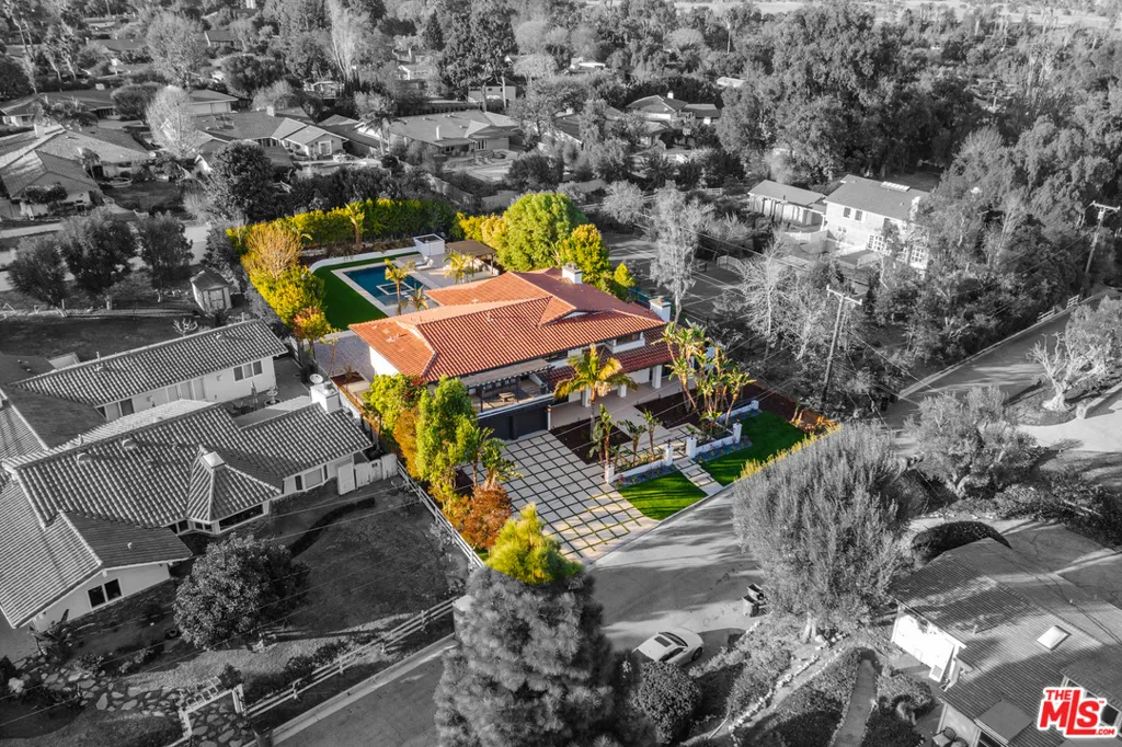 Tucked away within equestrian Rolling Hills Estates is the perfect blend of tranquility and an entertainer’s paradise. Over 4,700 SF of luxury inside and almost a half-acre of privacy outside. This home leaves nothing to be desired with five bedrooms, five bathrooms, beautifully appointed formal and casual spaces, as well as an expansive resort-style yard. An expertly crafted kitchen features a large breakfast bar, 6-burner oven, double dishwasher, stainless steel fridge, Jenn Air Steam Oven, built-in espresso maker as well as Sub Zero wine fridge. An en-suite bedroom is on this level with direct access to the yard. The main bedroom retreat with a balcony overlooking the backyard has a gorgeous stone fireplace, magnificent bathroom, and oversized walk-in closet. Three additional en-suite bedrooms are on the upper floor, all with balcony access. Outside, find an expansive lawn, sparkling pool and spa, poolside cabana, and ample dining and entertaining space.