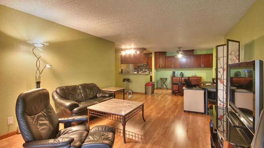 Bright Updated Super Clean End unit w/2 master suites split by large livingroom. Kitchen wi/ modern cabinets, granite counters& S/S appliances. Wood floors thruout. Double pane windows and sliding door. Bathrooms w/ designer’s tiles, 2 bathtubs, newer vanities.Large walk in closets. Private balcony perfect for relaxation. 1 parking. Coin operated laundry & Elevator in building. Complex offers security guards, gym, club house, on-site management, tennis court, swimming pools and sauna, free shuttles, etc.