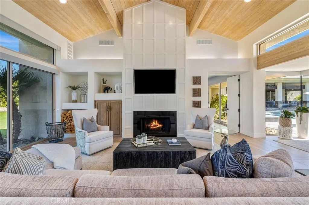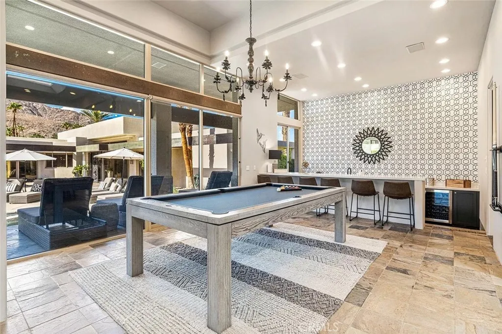 Available December and January, RENTED FEB-MAY 2025 Enjoy Panoramic Mountain Views from this sprawling one-acre renovated estate ideal as a family compound or entertainer’s paradise located in the Guard Gated community of Indian Wells. This spacious contemporary Ministrelli-built residence has an enormous guest house equipped with a large great room, full bar, and 2 guest bedrooms with ensuite baths. Laundry room, pool table, shuffleboard. The main house has a living room w/ fireplace vaulted wood-beamed ceilings, dining room, wet bar, designer kitchen w/ stainless steel Miele appliances, family room of kitchen area, Primaray suite with two separate walk-in closets, stand-alone bathtub, walk-in shower, luxurious guest bedrooms with ensuite bathrooms. Laundry room, 3 car garage, golf cart. This ultra-private property inside and out has all-new landscaping, lighting, rock and stone waterfall fountains, sunken tennis/pickleball court, bocce ball court, large pebble-tee pool, spa with fountains, and Cul de sac location. Indian Wells is located near El Paseo and many other numberer shops and restaurants.