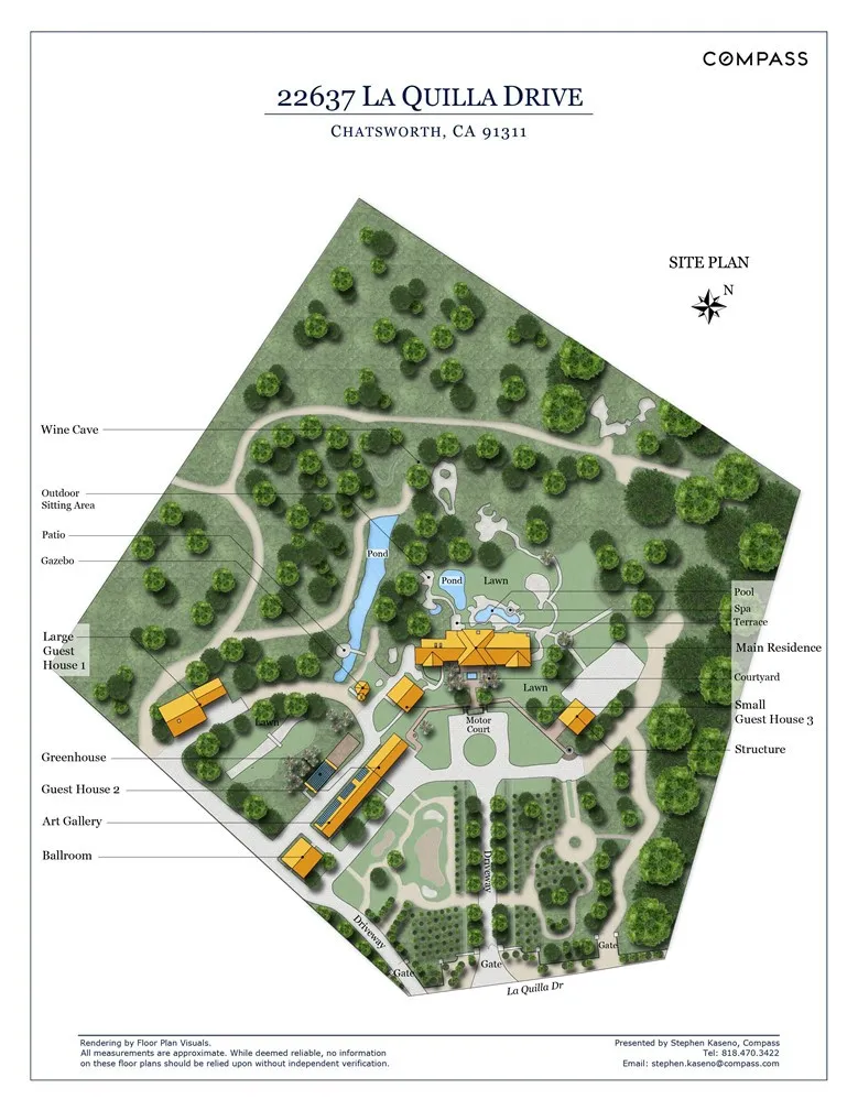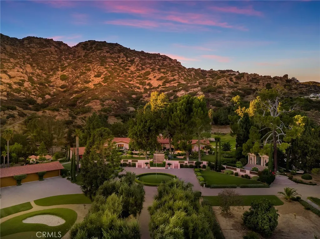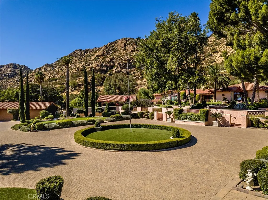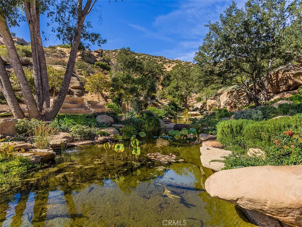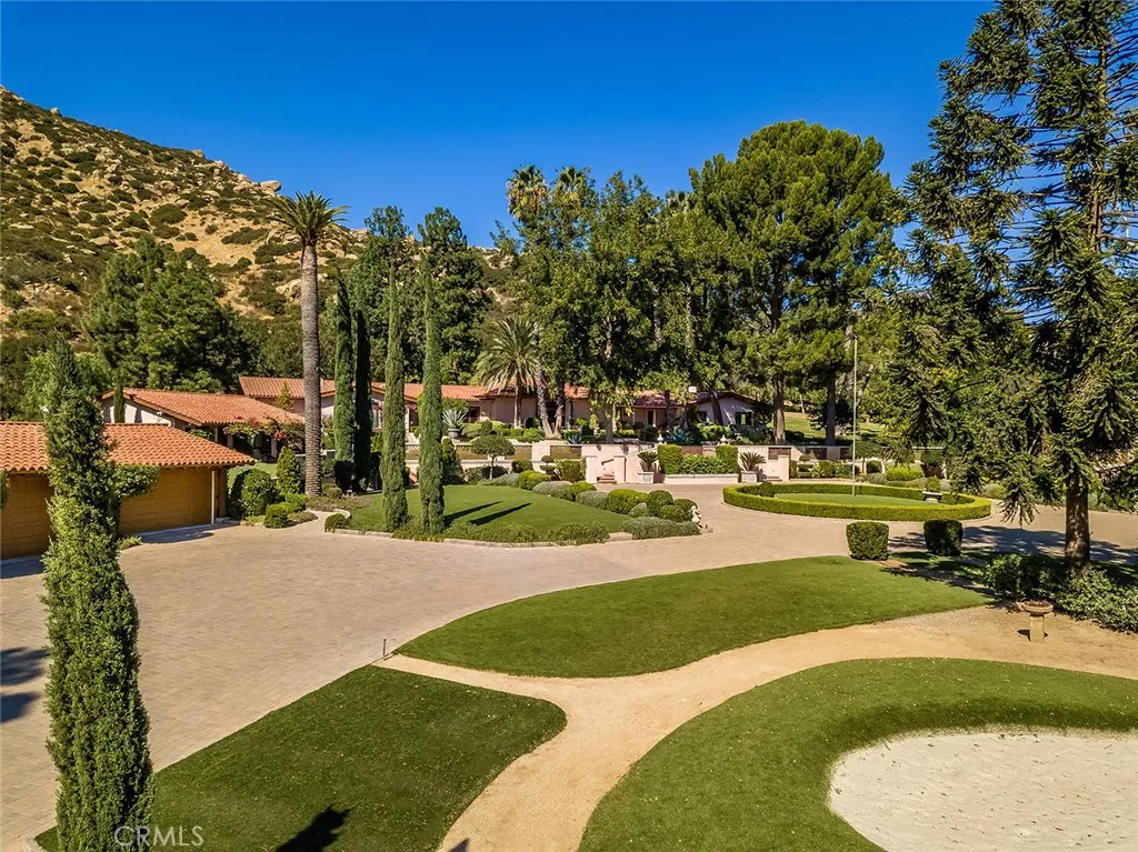 Nestled in the foothills of the Santa Susana Mountains, “The Ranch” is a historically significant estate, originally homesteaded in 1874. Spanning nearly 16 acres, the property is adorned with picturesque hills, striking boulders, and majestic Heritage Oak trees. Such unique properties are truly rare, appearing once in a generation. This extraordinary compound offers over 12,298 square feet of living space, including a main residence with a spacious basement that holds endless possibilities, three guest bungalows, art galleries, and a grand ballroom. The meticulously maintained landscape seamlessly blends the home with entertainment spaces, creating a serene oasis. The estate features garage parking for up to 10 cars, a pool, spa, waterfalls, and tranquil koi ponds. A Japanese Garden meanders through the property, enhancing its peaceful ambiance. A historic wine cave, crafted in the 1800s from local stone, combines the past with the present, featuring an artisan-built, illuminated onyx bar. Nearby, a tranquil entertainment area allows you to enjoy the soothing sounds of a waterfall cascading into lotus and water lily-filled ponds. With potential for a helipad and three separate gated driveways, the property is designed for ultimate privacy and convenience. A lighted tennis court, complete with a stage, viewing pavilion, and guest amenities, adds to its allure. Located within the 24-hour guard-gated community of Indian Springs Estates, known for its exclusivity and rustic landscape, the estate is conveniently close to the 118 freeway, shopping, dining, and entertainment options. Just a half-hour from Los Angeles and near the renowned Sierra Canyon School, this property offers an unparalleled opportunity for multi-generational living, a private Zen retreat, or potential subdivision. This unique site is truly irreplaceable, becoming more special with every moment spent there.