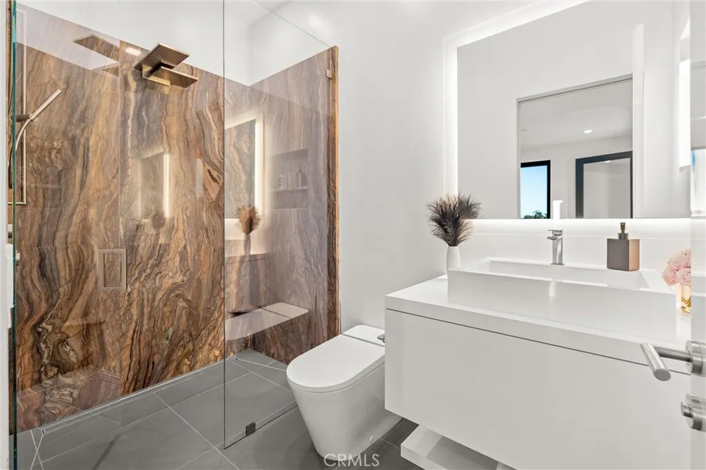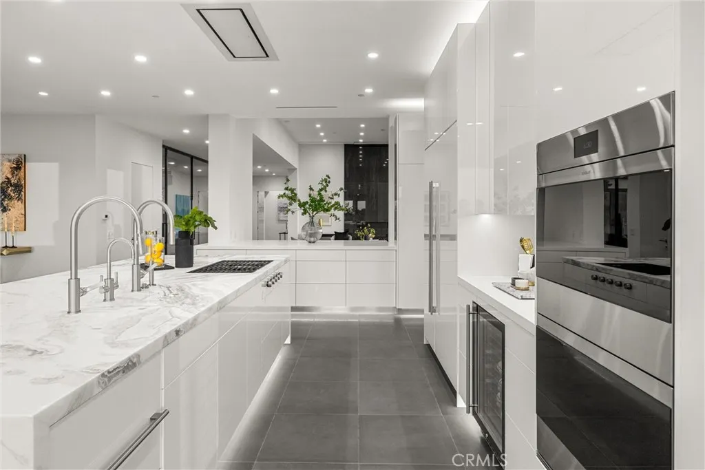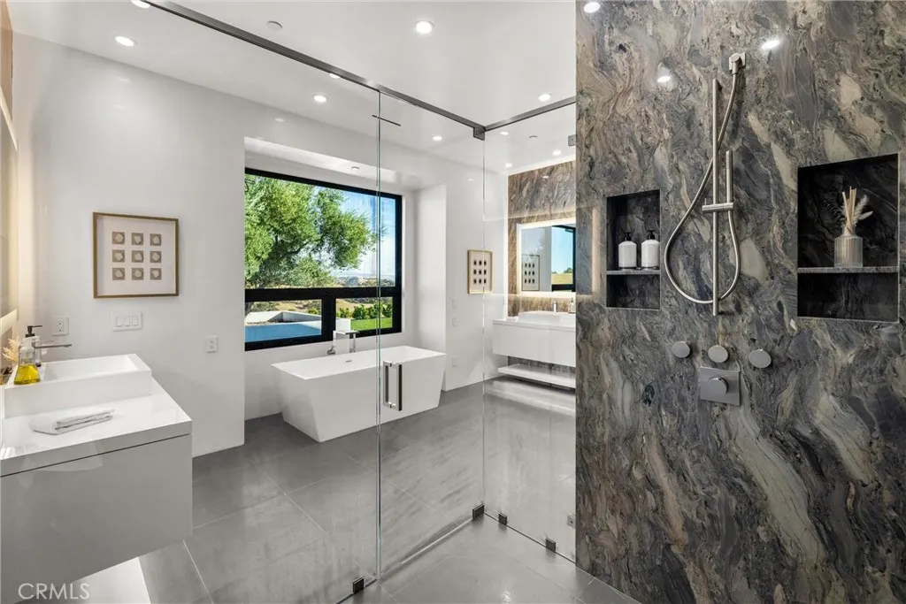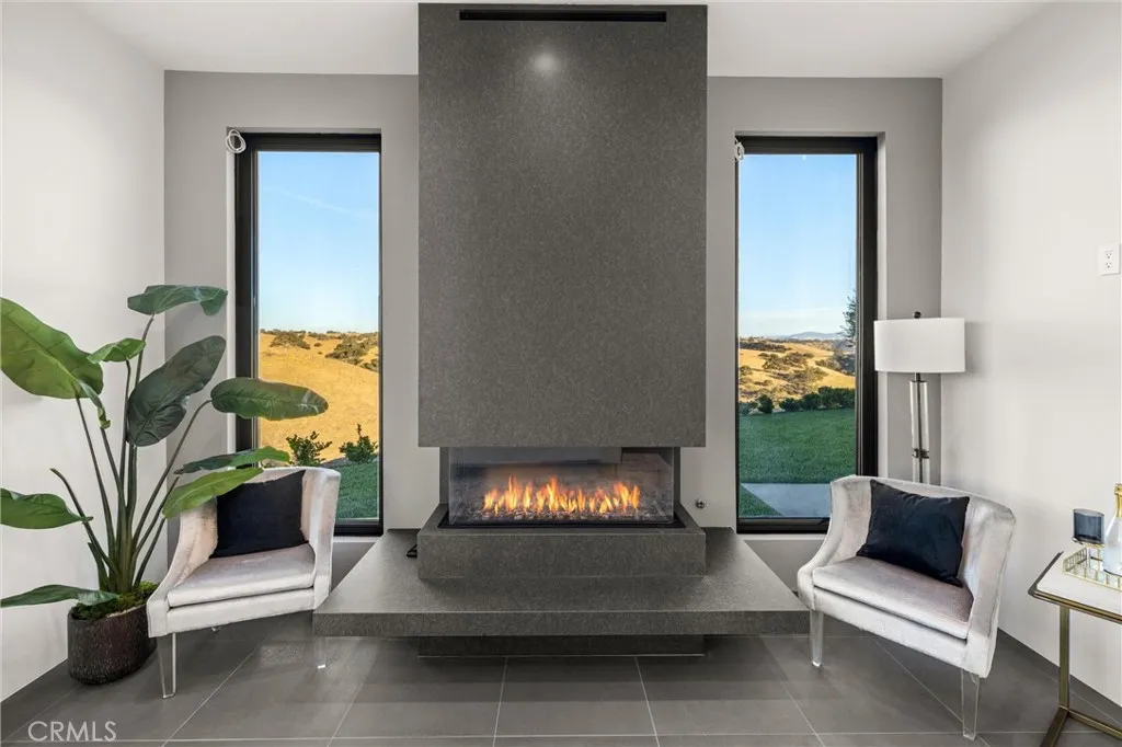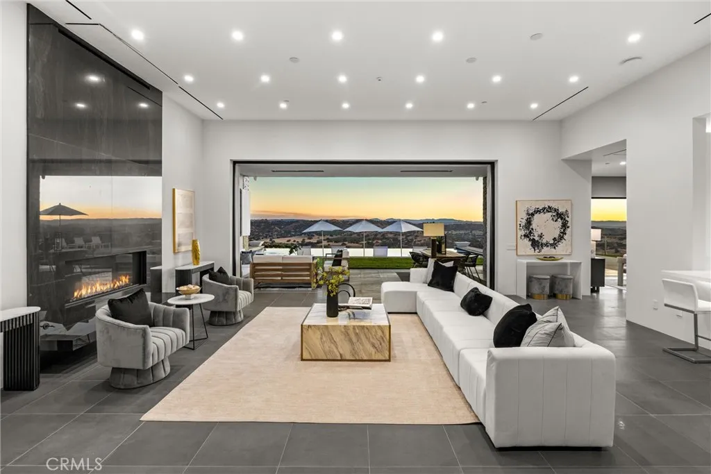 Escape to the majestic rolling hills of Paso Robles, a premier destination in California’s wine country. Nestled on 40 private acres above the famed Cass Winery, this Modern Luxury Estate epitomizes the essence of indoor-outdoor living with sophistication and elegance. The Italian cypress-lined drive leads to the heart of the property, where the beautiful landscape invites you to experience the seamless integration of nature and modern architecture. The Grand Atrium serves as the estate’s main entrance and central hub, welcoming you into a space that effortlessly connects to both the main living areas and a private guest apartment. As you enter the wide-open living room you experience panoramic views of rolling hills through expansive sliding glass doors that seamlessly transition between the interior space and the outdoors, blurring the line between the two environments. The gourmet kitchen is a chef’s delight, featuring a stunning waterfall island with moonstone quartz countertop w/ top tier appliances, and a Vinotemp Private Reserve wine refrigerator adds a touch of artistry. The kitchen nook has direct access to the outdoor alfresco kitchen. And a formal dining room provides an elegant setting, complete with a 300+bottle temp-controlled wine wall. The primary en-suite offers a private sanctuary, with breathtaking views. A Brazilian white Calcite stone fireplace adds warmth, while the en-suite bathroom offers a spa-like retreat. Dual custom vanities, a freestanding tub, a luxurious waterfall rain shower designed by Franco Sargiani are surrounded by Verde Fusion stone from Brazil. The suite boasts dual closets, custom cabinetry & lighted shelving. Additional guest accommodations include two en-suite bedrooms, a fully equipped gym for wellness enthusiasts and a private studio with open-concept living. Outfitted w/ luxurious finishes, two private decks, a full kitchen, laundry closet, and a stunning walk-in shower. The Outdoor living space offers a resort-caliber setting with a state-of-the-art alfresco kitchen. The infinity-edge pool overlooks Paso Robles’ rolling hills, offering a backdrop for relaxation. A heated built-in hot tub, Baja sun shelf, and in-pool seating enhance the experience, while a resort-style putting course, designed by renowned Camron Howell, adds a playful touch. The outdoor amenities also include bocce ball court and built-in basketball hoop, ensuring that every aspect of the estate is as luxurious as it is functional.