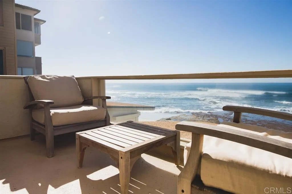 This spectacular ocean front condo sits in an elevated position right on the water! Boasting stunning ocean views from the living, dining, den & kitchen areas which open to its very own deck where one can enjoy dining al fresco, observing the sea-life and basking in the incredible sunsets! Additionally, enjoy the direct access to one of La Jolla’s finest beaches and a well-known surfing spot whilst all the amenities of the Village are close by! Comprising 2 spacious bedrooms with luxurious bathrooms, kitchen with granite & stainless steel appliances, travertine floors, A/C, Wi-fi, in-unit laundry with front loading washer & dryer, wireless printing, top quality bedding & linens, oceanfront common area with barbecue.