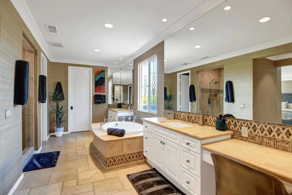 Get ready to be wowed! The owners of this home have spared no expense in creating a vacation paradise with richly-appointed designer furniture and stunning artwork. Amazing location only 15 minutes from Palm Springs and 15 minutes from Palm Desert! Upgraded, ultra-fast 1 gigabyte WIFI. Huge open concept kitchen, dining and living areas backed by incredible views through the floor to ceiling sliding glass doors. The kitchen is very well equipped and offers stainless steel appliances with gorgeous granite countertops and impressive custom lit glass front cabinets above. Adjacent to the kitchen is the spacious family room with designer furniture and a large flat screen television. For further indoor entertainment, the billiards room is a great place for the whole family to enjoy a competitive game of pool. Outside you’ll find jaw-dropping views surrounding your private pool and spa with plush lounge chairs to soak up the sun. The trellised seating area has a built-in BBQ with comfortable and stylish seating surrounding a fire table for those chilly winter nights. The elegant primary suite Master bedroom offers extreme comfort with a king size bed with the latest Intellibed technology with adjustable base, gorgeous custom build-ins, a large walk-in closet, and flat screen television. There are two nicely appointed guest bedrooms and a wonderful private office that doubles as a 4th bedroom. All offer attached and nicely updated full bathrooms.