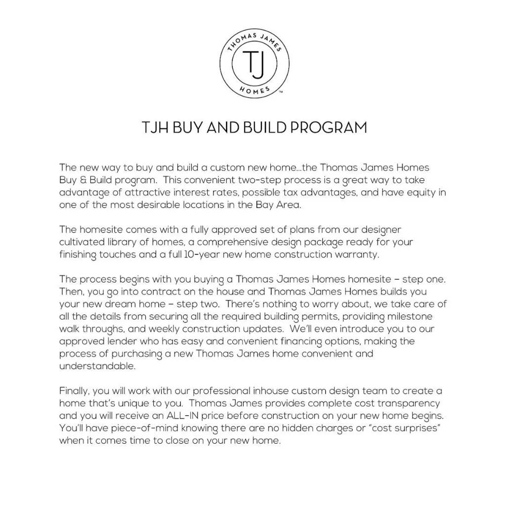 Unique opportunity to build your dream home with Thomas James Homes. Work with our in-house architecture and design team to build this home to match how you live. Close to shopping, parks and schools, this modern home in the desirable neighborhood of Downtown Menlo Park has something for everyone. Estimated home completion date is Summer/Fall 2023. *Preliminary architecture shown is subject to change based on jurisdiction’s design review process. Illustrative landscaping shown is generic and does not represent the landscaping proposed for this site. Purchase of this lot is contingent upon buyer entering into a separate construction agreement with builder for an all-in price of $7,195,000.