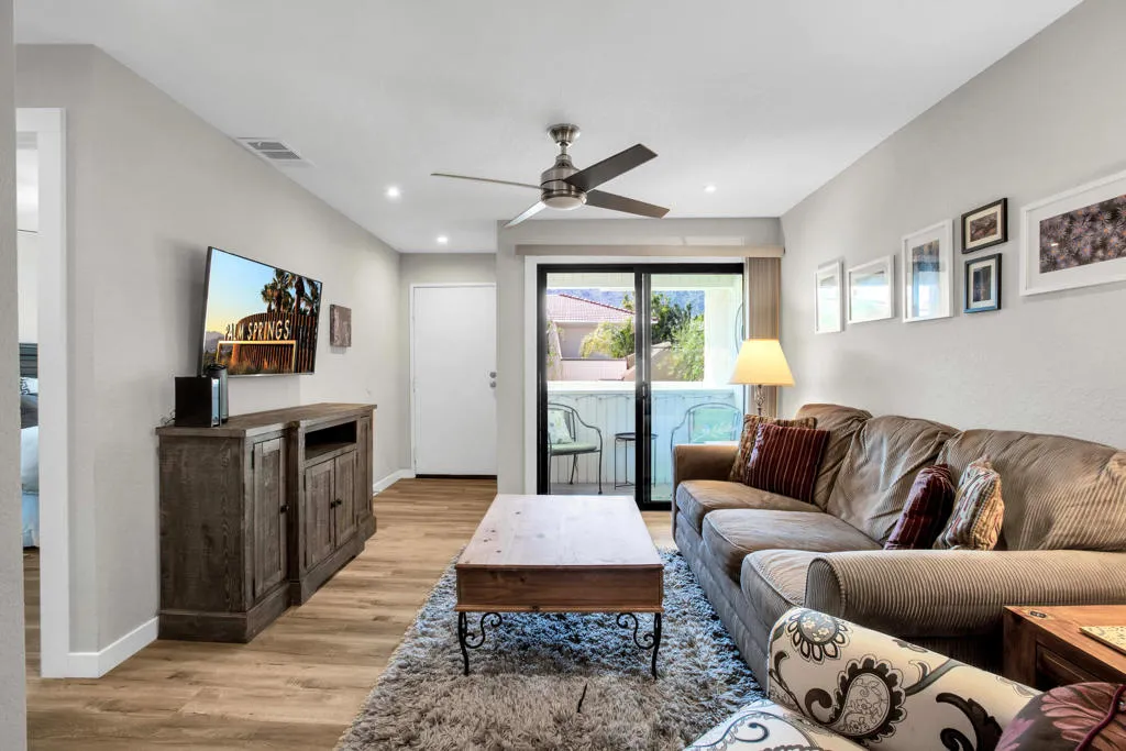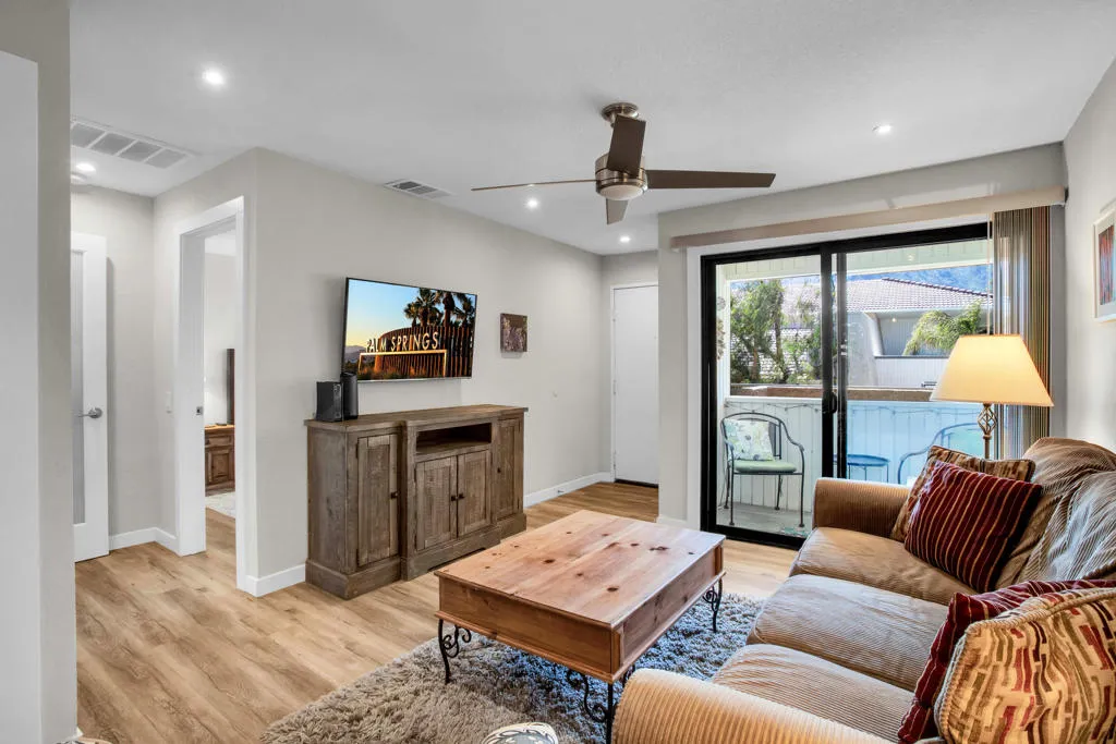 Vacation Rental. Minimum 30 day booking. Peak season rate posted.Experience the perfect getaway in this beautifully updated upstairs unit with stunning mountain views. Overlooking the pool and spa, this bright and inviting space features a newly remodeled kitchen and bathroom, offering all the comforts of home just steps from the pool and hot tub.You’ll love spending your vacation here, with rates as low as $65.00 per night during peak season, (Oct-May) including all utilities, and just a short distance from downtown Palm Springs. Off-peak rates (June-Sept) are only $50 per night, making this an incredibly affordable option for your stay.Situated in a prime location within the community, this unit offers easy access to everything you need for a relaxing and enjoyable vacation. Please note: no pets, no smoking, and short-term rentals only. This property is booked for January-March each year. Book your 2026 or 2027 vacation today!Cleaning Fee $225, Admin Fee $188, Refundable Damage Deposit $1000.