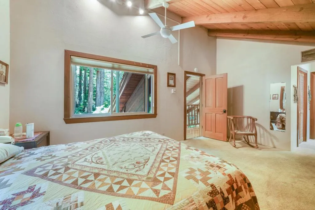 Remarkable property just minutes from Saratoga and even closer to the town of Boulder Creek. Majestic redwoods stand sentry awaiting the arrival of the fortunate new caretaker. Custom Built about 1978 utilizing the native forest for all the open beams. Interior T and G Con heart redwood all hand selected. Custom kitchen recently created by current owner. The studio unit above the double car detached garage is currently rented.