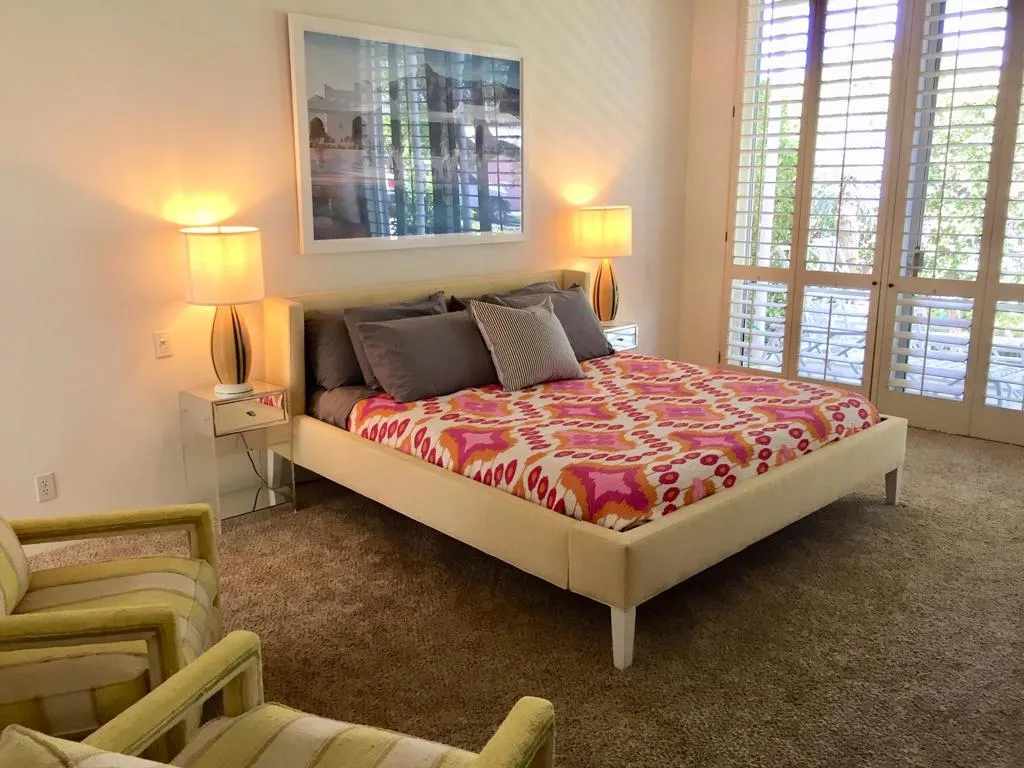 RENTED January – April, 2026. Welcome to this exquisite jewel-box home in the prestigious Marrakesh Country Club, now available as a seasonal rental starting December 1, 2024. With its relaxed eclectic style and chic decor, this residence is a perfect blend of mid-century modern elegance and natural elements. Artfully decorated with unique artwork, books, printed rugs, and ethnic-inspired accessories, the home creates a warm and inviting ambiance–ideal for conversations, reading, music, or leisurely Sunday afternoons. Nestled on a quiet street with only two homes on the lot, this beautiful property offers serene views of a lush greenbelt, Eisenhower Mountain, and the nearby sparkling community pool. The gated entry courtyard, complete with a graceful water feature, seamlessly connects indoor and outdoor living spaces, making it perfect for entertaining or simply enjoying the desert’s peaceful atmosphere. The home features two spacious bedroom suites, each with walk-in closets and atrium-style bathrooms, including walk-in showers and separate tubs. The 3rd bedroom is currently set up as a comfortable office, ideal for remote work. The kitchen boasts stone countertops, a Dacor double oven, and a 5-burner gas range. Marrakesh offers a variety of premium amenities, including golf, tennis, fitness facilities, and fine dining. Social and Golf privileges are available to renters for an additional fee. Experience the very best of desert living in this tranquil retreat! NO PETS