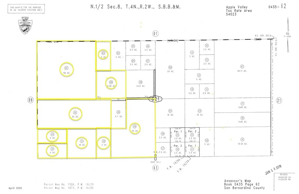 PRIME 145+ ACRES in SOUTHERN MOJAVE DESERT: Explore the vast potential of 145+ acres in the rapidly expanding Southern Mojave Desert, Western San Bernardino County, California. This property, located in the High Desert/Apple Valley/Lucerne Valley area, offers spectacular VIEWS of the San Bernardino Mountains and sweeping desert vistas. The Laguna Seca/Del Oro Package includes eleven (11) flat parcels, all interconnected except for a ten (10) acre parcel (#0435-098-32) that could serve as an ideal contractor’s yard. Power and water are available, making this a prime property for development. Situated just east of Apple Valley’s city limits, the property is conveniently located south of SR-18, west of SR-247, and east of I-15 Freeway and Bear Valley Road. Residents and businesses benefit from easy access to Apple Valley’s shopping centers, medical facilities, schools (both public and charter), churches, restaurants, and public airport. The area is poised for significant growth, supported by the presence of major distribution centers such as Fresenius Medical Care, Walmart, and Big Lots. With thousands of visitors and potential homebuyers passing through annually, and additional growth anticipated, this location is ideal for future development. Apple Valley is also set to benefit from the BRIGHTLINE WEST HIGH-SPEED RAIL PROJECT, which will connect the Las Vegas Strip to APPLE VALLEY, Hesperia and Rancho Cucamonga in Southern California. Scheduled to break ground this year and move passengers by 2028. These 218 miles of track will drive further economic activity and job creation in Apple Valley and surrounding cities. Upcoming developments include new restaurants, hotels, and retail stores alongside the expansion of residential tracts of communities like Pulte Del Webb’s “Sun City at Apple Valley.” This is a compelling opportunity for new subdivisions and projects. (This listing is deemed reliable but not guaranteed. Buyers and their representatives are encouraged to perform their own due diligence regarding intended use.) Do Laguna Seca/Del Oro Project is your opportunity to be part of the dynamic growth of Apple Valley! Parcel coordinates are 34.443497, -117.120286