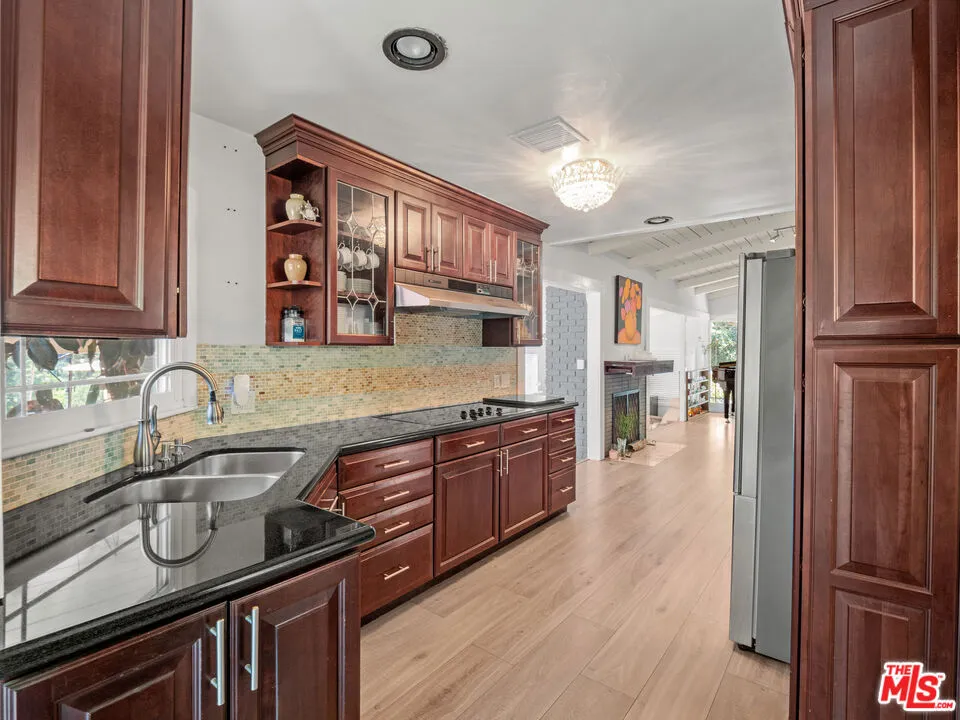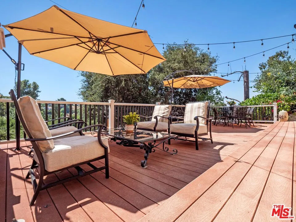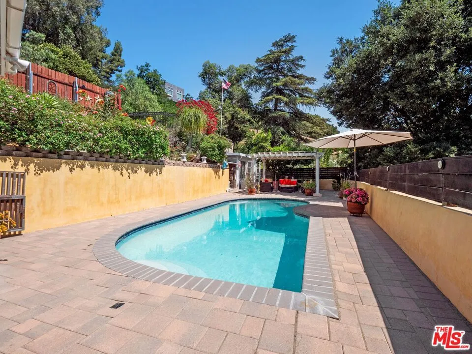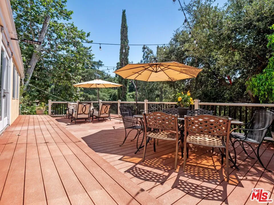 Welcome to this upgraded 4-bed, 2-bath entertainer’s pool home in Woodland Hills, featuring stunning views and an electric gated entry. Step into the inviting foyer that leads to the family room, boasting an upgraded fireplace with a wood mantel, wood vaulted ceilings, upgraded flooring and a slider opening to the side yard. The living room flows into the dining area, both filled with natural light from numerous windows showcasing beautiful views. The kitchen is equipped with stainless steel appliances and stunning cabinets with pull-outs, granite counters with custom backsplash and a breakfast nook offering picturesque yard views and lots of storage. The first level also includes two bedrooms, a bathroom, and a laundry area. Upstairs, you’ll find ample natural light, upgraded flooring, two additional bedrooms with walk-in closets, and a remodeled bathroom. The entertainer’s yard features a built-in BBQ, replastered sparkling pool with newer tiles and saltwater chlorine generators, newer HVAC, pergola patio cover, pool house, waterproof decking, recently stucco exterior and abundant storage throughout the property. Close proximity to Malibu Beach, Commons in Calabasas, The Village in Topanga, Topanga Social, Ventura Blvd, shopping, restaurants, and more! This home has it all and is ready for its new owner to make it their home!