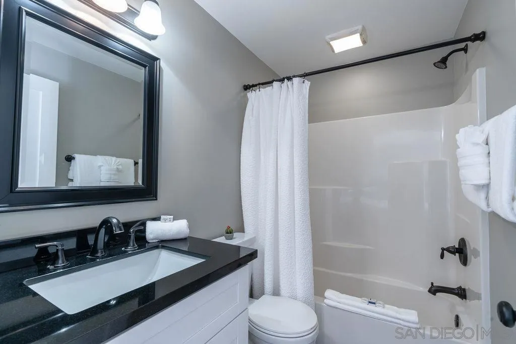 Cozy Beachside Studio,Welcome to our charming beachside studio, where relaxation and convenience meet! Nestled in a tranquil neighborhood, just a leisurely stroll from the sandy shores, this delightful studio is your ticket to an unforgettable vacation experience. Walking distance to Law Street Beach and all the fun and excitement of Garnet Avenue! Please note: this is a true studio with no separate bedroom.Step into this inviting studio that features a comfortable queen bed, a ceiling fan and A/C to keep you cool on summer nights, and a flat-screen, Smart TV for your entertainment. Whip up quick and simple meals in the kitchenette, complete with a mini refrigerator, 2-burner stove, microwave, coffee maker, plus high-top table for two. Freshen up in the combo tub/shower after a day at the beach or exploring the nearby attractions. Right outside your door, you’ll discover a small patio area with a bistro table with 2 chairs. Enjoy your morning coffee or evening drinks in this outdoor space. Don’t forget to fire up the BBQ and sizzle some steaks or seafood. There’s no need to overpack! We provide a stacked washer and dryer on-site for your convenience. Discover the beauty of our coastal paradise, where you can unwind, soak up the sun, and create lasting memories. Whether you’re seeking a romantic escape or a solo retreat, this cozy studio is your ideal home away from home.