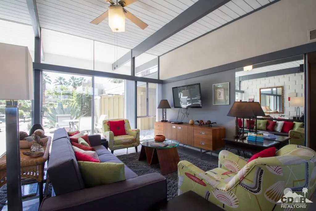 Beautifully updated 2 bedroom 2 bath condo in circle 2 of the historic Sandpiper development. This unit blends the modern with the classic mid-century styling of the era. Kitchen is fully updated and opens up into the living room and dining area. Wonderful views from the southern facing poolside patio. There is an additional private patio on the back of the unit for barbecues and relaxing. Master Bedroom has a King bed, guest room has a queen size bed. This property is close to shopping, dining and entertainment. Come enjoy the wonderful desert life style at its best.