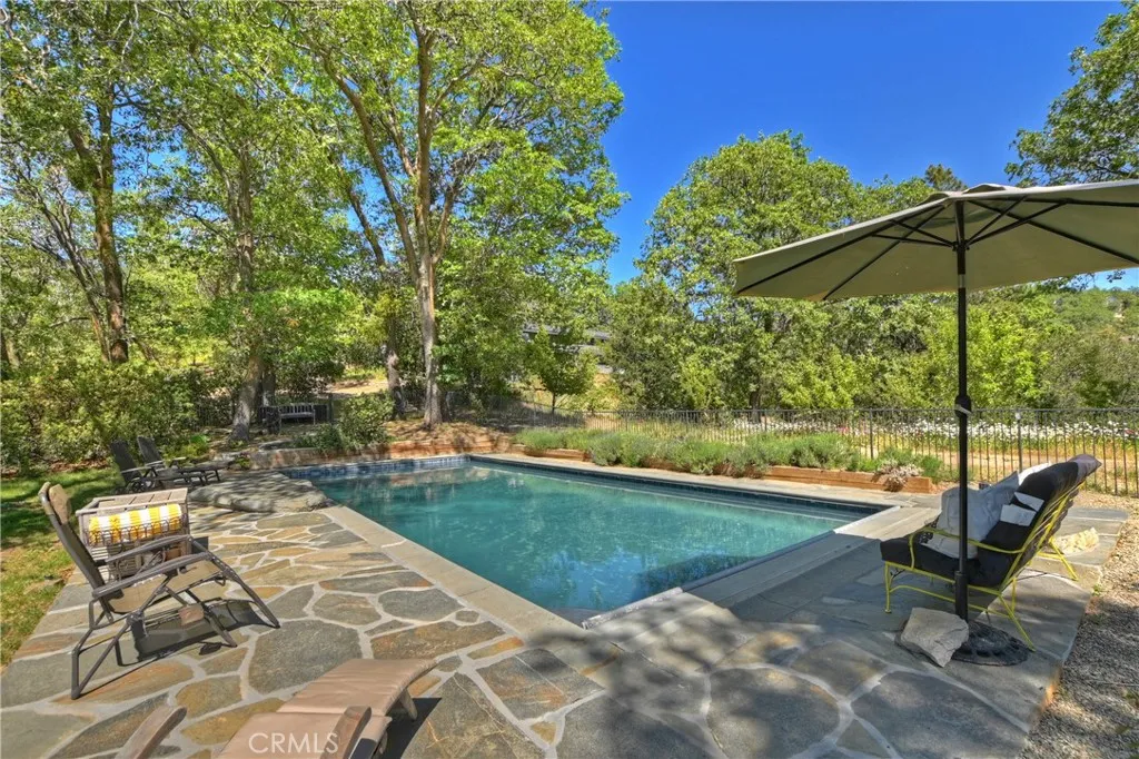 Imagine strolling through your 2.9 acre parcel; blanketed within a canopy of mature Oak Trees, a variety of apple trees, and wildflowers throughout. Breathtaking views of the Northern Pinnacle rock formations. A pathway winding through the forest leads to your private swimming pool with slate sunbathing deck, and croquet area. Horses rest in their stables just beyond the secluded pool. Enjoy relaxing evenings, creating memories with family and friends on a massive wrap around rear deck overlooking the grounds. Winter holidays cozied up next to the stone fireplace which rests in a spacious open concept living room with two story cathedral ceiling. Living room offers wrap around windows, hardwood flooring, built in bookcases, and level entry out to the rear deck. Updated kitchen open to the living room complete with solid surface counters, farm house sink, and stainless appliances. This 3,052 sq ft ranch house features 4 bedrooms, 3.5 baths. Primary bedroom en suite, laundry room, kitchen and living room all conveniently located on the main level. Level entry from front door and garage entryways. Upstairs offers 3 guest bedrooms(one being en suite with bath attached) and a home office. Level driveway provides plenty of room for multiple guest and boat parking. Full lake rights to private Lake Arrowhead and zoned equestrian. There’s an equestrian easement which allows you to ride directly from the stables into the National Forest. Off road vehicle enthusiast? Ride straight from the property and connect to miles of single track ATV & mountain bike trails. Property includes its own water well to feed the landscaping, pool, etc. It’s time leave the busy city life behind and escape to one of the most serene estate setting’s Lake Arrowhead has to offer. Must see!