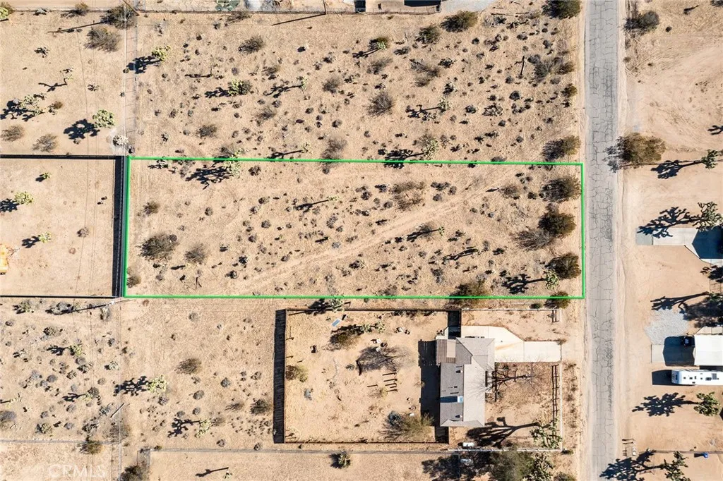 LARGE PARCEL with Water & Electric adjacent to property. Established neighborhood in Yucca Mesa. This area has a Yucca Valley mailing address, but is not located in the City of Yucca Valley. As a result, sewer connection is not required. And this area does not have restriction presently on vacation rentals. There are a few joshua trees on the lot, but it appears there is plenty of room for a building site (buyer to check). Note: Green lines demarcating boundaries are approximate; property has not been surveyed; street address is not official – do not use address or google maps GPS to locate property. To find property, please locate with APN: 0598-102-34