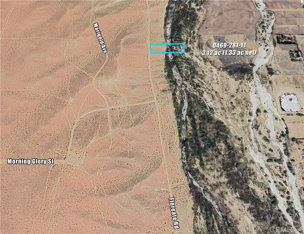 3.12 ac Rural Living parcel on Floreate Rd along the west side of the Mojave River in Oro Grande/Adelanto. River flows above ground in this area. Back half of lot drops down into River area. Access via Hwy 395 to Colusa Rd, to Helendale Rd, to Purple Sage/Morning Glory, to Floreate. 4×4 Vehicle recommended. Seclusion and the River call you. 9 Lots total available on/off Floreate (6 on River, 3 off). Please contact Listing Agent for more information.