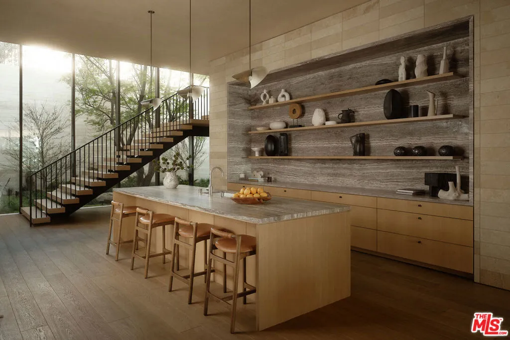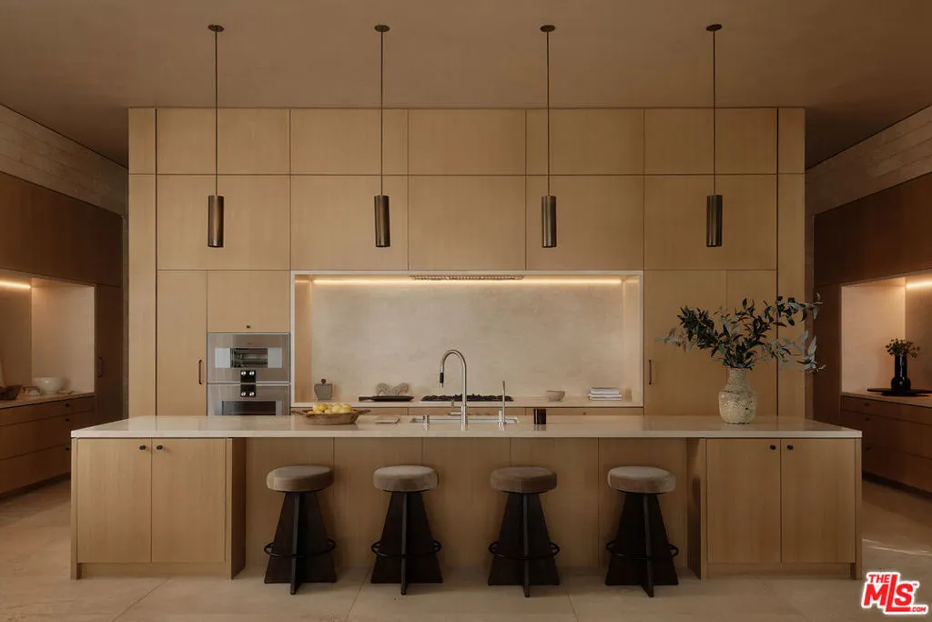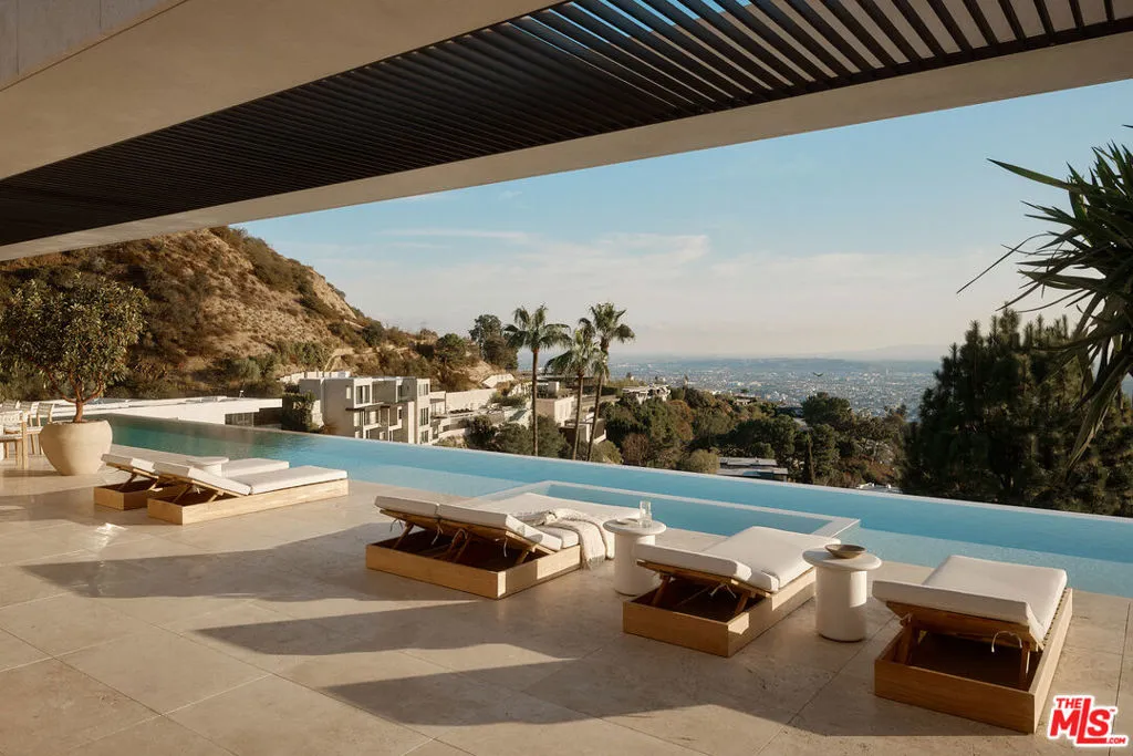 Designed by the internationally acclaimed architectural firm Woods + Dangaran, this extraordinary estate commands unparalleled 280 southern views, spanning from the glittering Los Angeles skyline to the vast expanse of the Pacific Ocean. Crafted with 200 tons of hand-selected Turkish Travertine, the residence is a masterpiece of modern design, where floor-to-ceiling glass panels and White Oak accents invite abundant natural light, creating an atmosphere of warmth and sophistication. At the heart of the home, a state-of-the-art chef’s kitchen outfitted with Gaggenau and Sub-Zero appliances, seamlessly integrates with the exquisitely designed formal dining room and living space, both of which open to the 115-foot infinity pool that spans the length of the estate, offering an unparalleled setting for entertainment and relaxation. The primary suite is a private sanctuary, evoking a spa-like retreat with a soaking tub, expansive custom closets, and a secluded atrium, ensuring tranquility and refinement. A striking two-story glass enclosure houses a 35-foot Jacaranda tree, serving as the estate’s living centerpiece – a breathtaking fusion of architecture and nature. Designed for unrivaled luxury and wellness, the estate boasts an array of premier amenities, including a private theater, gym, spa, wine cellar, and lounge. Advanced Delos Super V air purification technology ensures an environment of pristine air quality, capturing and reducing ultrafine particles to promote health and well-being. Every element of this estate has been meticulously curated to redefine luxury living, where form, function, and artistry converge to create an unparalleled residential experience. Nightingale is not just a home but a sanctuary of sophistication, serenity, and distinction.