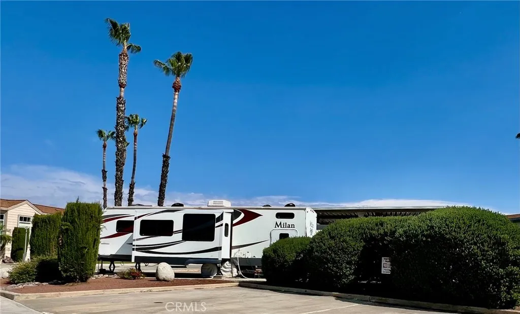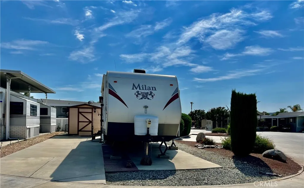 OWN YOUR LAND! Desired Mt shadows RV Resort Gated 55+ Senior Community. Charming 2013 Milan Eclipse Recreational Travel Trailer Included With An Electric Lift Max Capacity Of 300 LBS To The Front Door Entrance. Beautiful Cherrywood Cabinetry, Refrigerator, Microwave, Propane Cook Top & Oven. Master Bedroom Has His & Hers Closets, TV Can Be Watched From The Living Room & Bedroom. Living Room Area Has A Couch & Kitchen Table That Can Be Made Into Beds & Guest Bedroom Has Four Bunk Beds & Extra Storage Cabinets. Bathroom Has A Step In Shower Stall And Access To The Back Door. Storage Shed Has Been Repaired & Painted. Located On A Corner Lot With Great Views Of The Mountains. Extra Guest Parking At The Side & Across The Street From The Property Makes The Location Very Desirable. Two Clubhouses To Choose From & Close Distance To The Main Clubhouse With Many Amenities To Choose From Including Heated Salt Water Pool, Spas, Billiards Room, Shuffle Board, Picnic Area, Gathering Areas, Large Community Kitchens, Exercise Rooms, Rest Rooms & Showers, Laundry Rooms, Horse Shoe Pit, Ping Pong Tables, Corn Hole & More. The Association Has Committees That Plan & Organize Several Activities From Luncheons, Excercise Classes, Special Occasion Dinners, Matinees, Bingo, Karaoke And Much More. Great For Commuting To Temecula Wine Country, Mountains, Beaches & Minutes From Diamond Valley Lake. LOW TAXES & HOA FEES Of Approx $243.65 Includes Water, Sewer, Trash Basic Cable & Internet. Resort Living At It’s Finest!