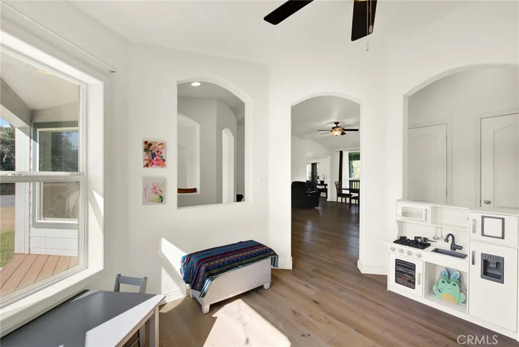 WELL HELLO BEAUTIFUL!! Welcome to 23580 Loleta. Nestled behind an ancient olive grove is this fantastic home boasting 2658 square feet. The well is an impressive 350 feet deep and the solar is PAID FOR, what a bonus on your electric bill. Step up into up into the entry way sand you will be impressed right away. There are two great sized rooms on either side of the formal entryway, each of which would make a great guest suite. The other room could be used as many things, a bar, exercise room, playroom and more. The living room is open concept to the dining area and kitchen. Love to cook? The kitchen is absolutely gorgeous with ample prep, storage and cupboard space. The island is a fantastic size (perfect to put plenty of people around) and the crisp white granite really looks beautiful. Just off the kitchen is the walk-in pantry (storage galore). Each of the bedrooms are a great size and the guest bath also has double sinks (great for 2 people to get ready at the same time). The master bedroom is really nice boasting not just one but 2 walk in closets. The master bathroom is large and has double vanities and soaker tub with nice sized stand-up shower. Most of the home has beautiful wide planked wood laminate flooring throughout with the exception of the bedroom which has carpet. The mudroom is a pleasant surprise with a nice size soaker sink, added storage and a bar to hang your close. This amazing place flows nicely with its vaulted ceilings and natural light that streams throughout. Imagine sitting on your back porch watching the continuing nature that strolls by. Plenty of Dove, Turkey, Quail etc.. The 10 acres of land is level and very usable. Fun fact, there is a huge, covered party area that should surely accommodate a large Croud. There are several outbuildings outside and even an ADU. Some of the best features outside is the brand-new driveway and parking area. This place is absolutely set up for entertaining. If you like to garden there is plenty of outdoor space to do so but there is a greenhouse for any inside gardening, you would like to do. You have got to see it to believe it. Call for an appointment today.