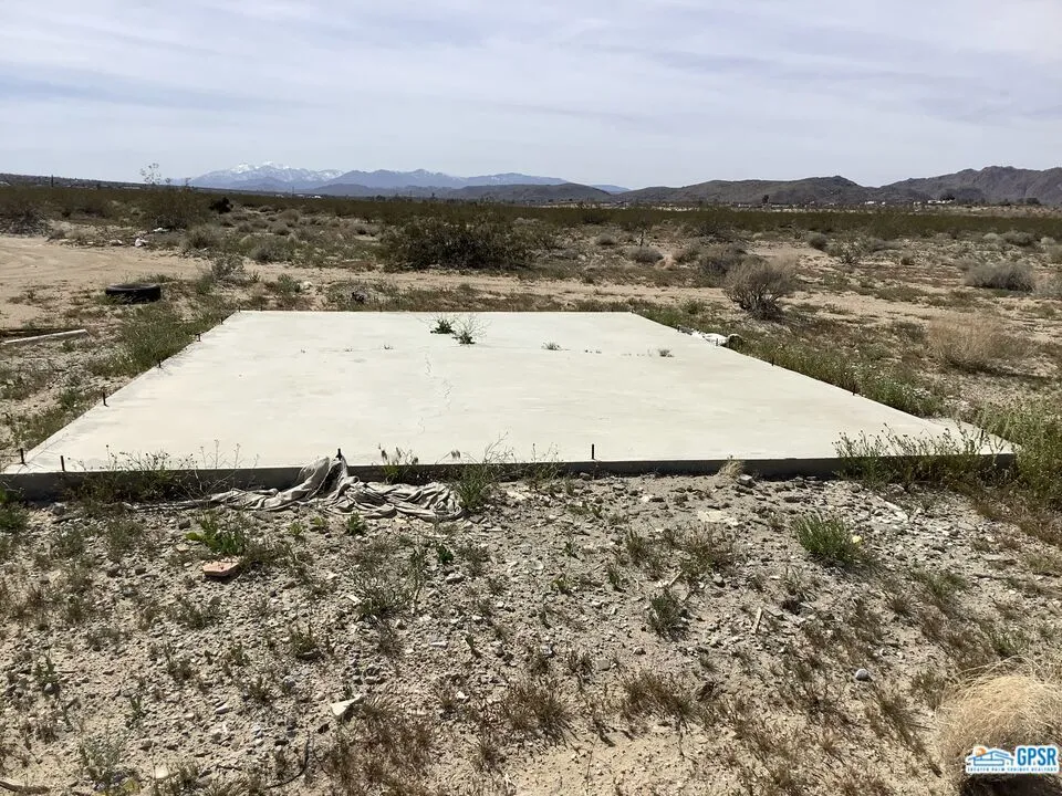 Motivated seller, Price Reduced. Great location in the heart of Joshua Tree and only 11 minutes from the park entrance. 360 degrees panoramic views and easy access from hwy 62. Flat land with previous recreational cabin foundation and driveway. Owner had a recent survey done on the land with markers on property for easy locating of property lines and will provide the drawings to the buyer. The owner also had drawings to build a pyramid home and will include the architectural drawings for the pyramid home if the buyers would like a fun and unique project, he is also willing to help the next buyer with the permitting process if needed.