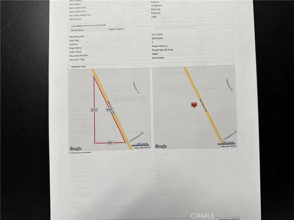 Very beautiful property located on Barstow Rd, HWY 247 in Barstow. The property is located between Stoddard Valley OHV Recreation Area and Sawtooth Canyon Camp Ground on the west side of Barstow Rd. just across from Candleberry Rd. The property is zoned RC or residential conservation and can be built on with a primary residence of any size and up to three ADUS not to exceed 1200 square feet per unit and two can be used for Airbnb per the San Bernardino County Planning Department…please verify with the County of San Bernardino. Lucerne Valley is located approx. 21.5 miles south and approx. 11 miles south of the 15 and approx. 47 miles to Big Bear Lake and approx. 10 miles south of Barstow Community College. Endless possibilities with the property for those who have vision for destination and camping with permits, etc. Also, Apple Valley is approximately 15 miles away and Victorville is approx. 22 miles away. The property is approximately 27.8 Acres. Beautiful backdrop of the mountains/hills. Long frontage along Barstow Rd., 2400 linear feet.