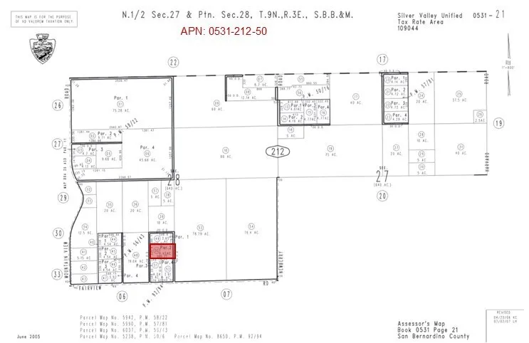 4.45 Acres ( APN: 0531-212-50) GPS: 34.83871, -116.67273 This wonderful 4 Acres sits along Harvard Rd in Newberry Springs, CA. Newberry Springs is a quaint desert community located in San Bernardino County, California between Interstate 15 and Highway 40 to the east of Barstow, CA. This property lies within the unincorporated area of the San Bernardino County within the ‘Rural Living’ zoning. This Rural Living zone can be subdivided into 5 acre parcels. Rural Living allows for Single Family homes, Manufactured homes, accessory crop production, produce stand and agritourism enterprises, animal keeping, livestock operations, school, place of worship, park or playground, Bed & Breakfast and small residential care facilities. Overhead electricity is available along Fairview Rd. Residents in the area have private water wells for their water needs, septic tanks for their sewer needs and propane tanks for their gas needs. Adjacent parcels are also for sale, a total of 16 acres is available. Newberry Springs is known for its serene and picturesque landscapes, it offers a peaceful escape from the bustling city life. The area is famous for the mesmerizing views of the Mojave Desert, showcasing stunning sunsets and starry nights that attract stargazers and nature enthusiasts alike. With its unique blend of rustic charm and natural beauty, Newberry Springs offers a tranquil retreat for those seeking a genuine desert experience. This property does not yet have an address, the address listed is for marketing purposes only. While the boundary lines on the map offer a glimpse, they are only approximate. A Buyer should verify boundaries, zoning and utilities, ensuring every aspect aligns with their vision for the property. GPS: 34.83871, -116.67273