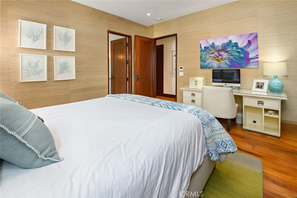 This is A RARE, Luxurious, OCEAN VIEW, Strand-adjacent CUSTOM QUALITY built home located IN THE 100-block South End Sand Section. It has been over 20 years since a home of this quality, size, and location (100 block walk street South Sand Section) has been listed on the market for purchase. This rare gem, just steps from the beach and a short stroll to the vibrant downtown, offers the perfect place for privacy and coastal living. Jon Starr Design Group designed this fabulous 5 bedroom, 7 bath home (two are 1/2 baths), office, office area, 3 living spaces, with a three-car garage and room for a 4th car outside. 5,401 sq is featured on 4 levels. There is an elevator to access all levels, making the separation desirable and the flow easy to enjoy. One of the “living spaces” could be a living space/gym or movie room. There is an extensive wine room (600+ bottles) for the wine connoisseur. (or design this room to fit your personal needs). The teak and limestone floors lend a timeless elegance to the space, while the mahogany ceilings, doors, and trim add warmth and richness. This home offers VIEWS of the OCEAN, The Manhattan Pier, and Malibu. Imagine waking up in your primary retreat, where the gentle ocean breeze greets you on your private deck. The open floor plan makes it an entertainer’s dream, with a spacious dining area and a chef’s kitchen featuring a walk-in pantry, oversized breakfast bar, and built-in eating nook. Your guest will be wowed by the well-appointed beach room with a wet bar. This room opens directly onto the walking street, perfect for enjoying coastal sunsets or hosting gatherings easily, while the downstairs flex space is perfect for a home gym or movie room for the whole family to enjoy. The use of skylights enhances the afternoon sun and sunset time of day. The lighting is fabulous. There are many custom features throughout. Whether you are enjoying a morning walk along the beach or relaxing with loved ones in one of the many living spaces, this home offers a lifestyle that is second to none. Don’t miss the chance to own a premier piece of Manhattan Beach Paradise.