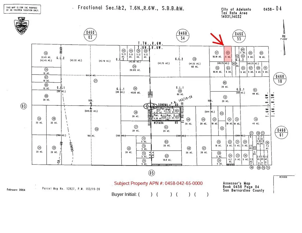 5 acre lot in N. Adelanto (within city Limit) w/ 330′ of frontage on Desert Flower Rd. (planned to be an aterial road), new homes w/ national retail stores, schools, & a community center are ready to break ground in this city. 2.5 miles W. of SCLA business park. 1-1/4 mile W. of Hwy 395. If offers superb mountain and city view. Level lot with potential to hold or build. The information provided herein is deemed accurate, but buyer and agent to do own due diligence. There are no warranties, express or implied.