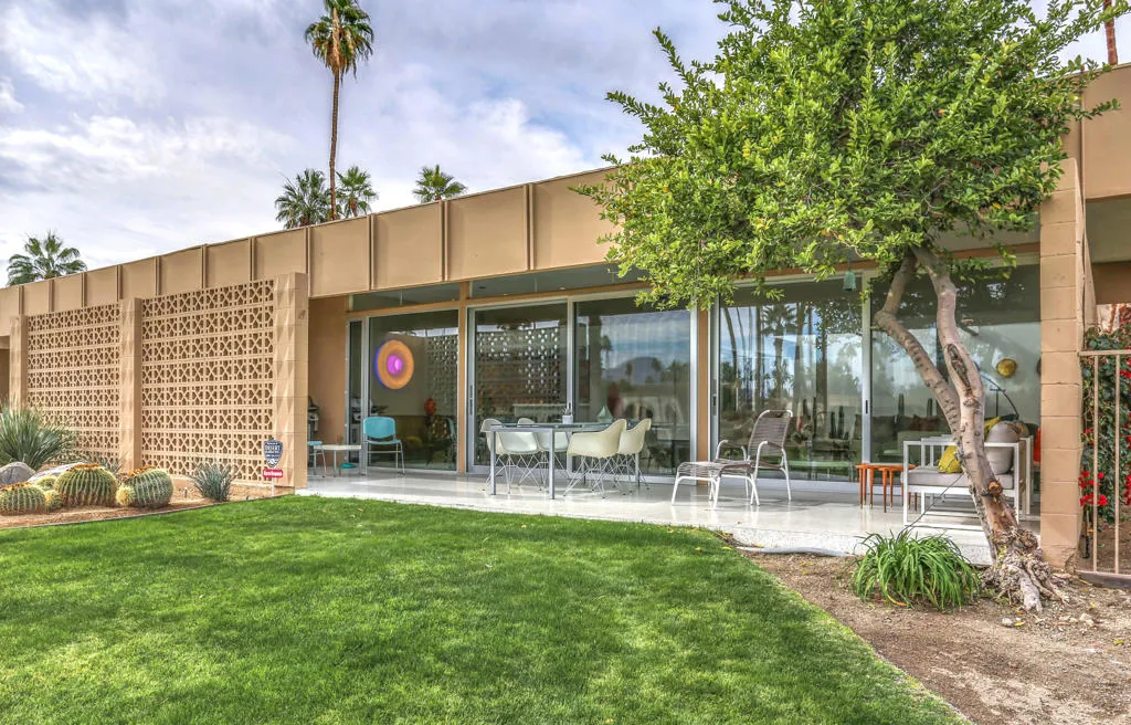 Enjoy the serene, relaxing setting of Sandpiper Palm Desert in one of William Krisel’s most popular designs. This 2 bedroom 2 bath 1,531 square foot home features the best of mid-century modern design: high ceilings and clerestory windows to let in the light, Shadowal block walls and privacy screens, combined with modern updates including new double-pane doors and windows, elegant 4′ square terrazzo floor tiles throughout, tastefully upgraded bathrooms, solar electric, and more. Walk through the private glass atrium entry and you’ll notice the clean lines and modern finishes that lend a relaxed, zen feeling to space. The poolside patio has the signature Sandpiper vintage block walls with an eastern exposure that has gorgeous mountain, green space, and pool views. The master suite, featuring an en-suite bathroom with a spacious shower, affords stunning west-facing mountain views. The 2nd bedroom has a queen sleeper sofa and a large-screen TV that provides space for relaxing and reading. Sandpiper is walking distance to finest shopping and dining in Palm Desert. Rental rate is $6,950 Jan – Apr, $6,500 Oct – Dec, summer rates negotiable.