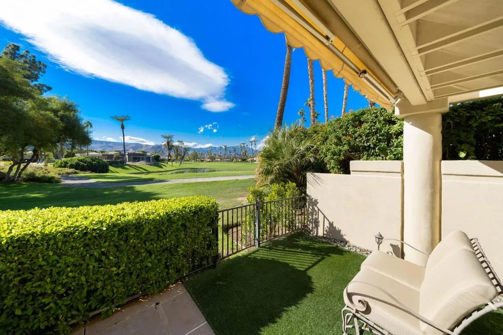 Leased through 2026. Spectacular Mountain, Fairway and Lake Views are yours from this former Turnberry model home. As you enter the private courtyard you’re welcomed into this home overlooking the Lake and down the 17th Fairway to the Mountain Vistas. 3 Bedrooms (one is a detached casita), 3 Bathrooms. The Chefs Kitchen has custom cabinets, Granite countertops and newer appliances. There is an adjacent breakfast Nook which opens to the family room. Family Room has a large flat Screen TV. Spacious Master Bedroom Suite with King Bed has a marble shower, spa tub and double vanity. 2nd Guest Room has a Queen bed and adjacent full bath. Casita is the 3rd Guest Room with Queen Bed. Enjoy the Sunsets from the Patio with your own private Spa. Multiple awnings. This corner location has South Views from the Kitchen, Dining Room & breakfast Nook~ all at this premiere Indian Wells Location.