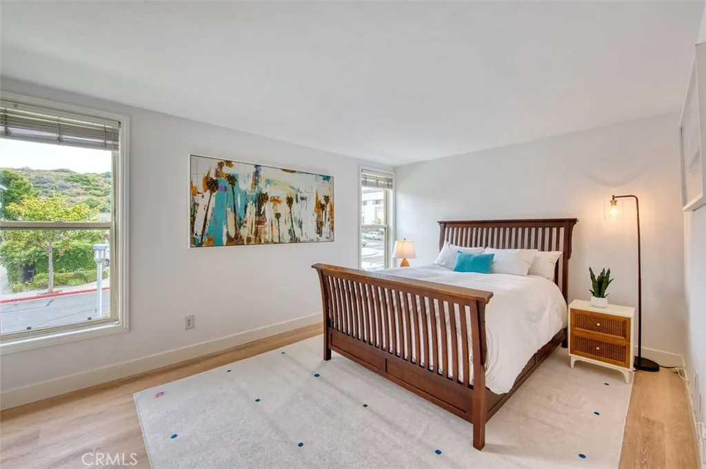 Fully FURNISHED, exceptional corner/upper unit. Newly reimagined mid-century modern decor featuring two bedrooms, two bathrooms, and a full-length balcony with mesmerizing views of the Dana Point Harbor, Ocean, and The Samson Overview Gazebo. The master includes a spacious walk-in closet and en-suite bathroom. The office area with built-ins offers a serene workspace overlooking the Harbor and Ocean. The kitchen boasts all-new white Café appliances (see updated appliances in photos), paired with gold fixtures throughout for a touch of elegance. This Gated community offers fantastic amenities, including a pool, hot tub, large grassy area and clubhouse overlooking the ocean and Dana Point Harbor. You’ll also enjoy the convenience of two full parking spaces in a covered garage, private washer and dryer, extra storage, and additional guest parking right next to the property. This home effortlessly blends modern upgrades with breathtaking coastal views, making it the perfect sanctuary. Highly desirable gated community at the end of the cul-de-sac. Enjoy Doheny Beach, Dana Point Blufftop Trail, restaurants, shopping and lifestyle of the Lantern Village in Dana Point!