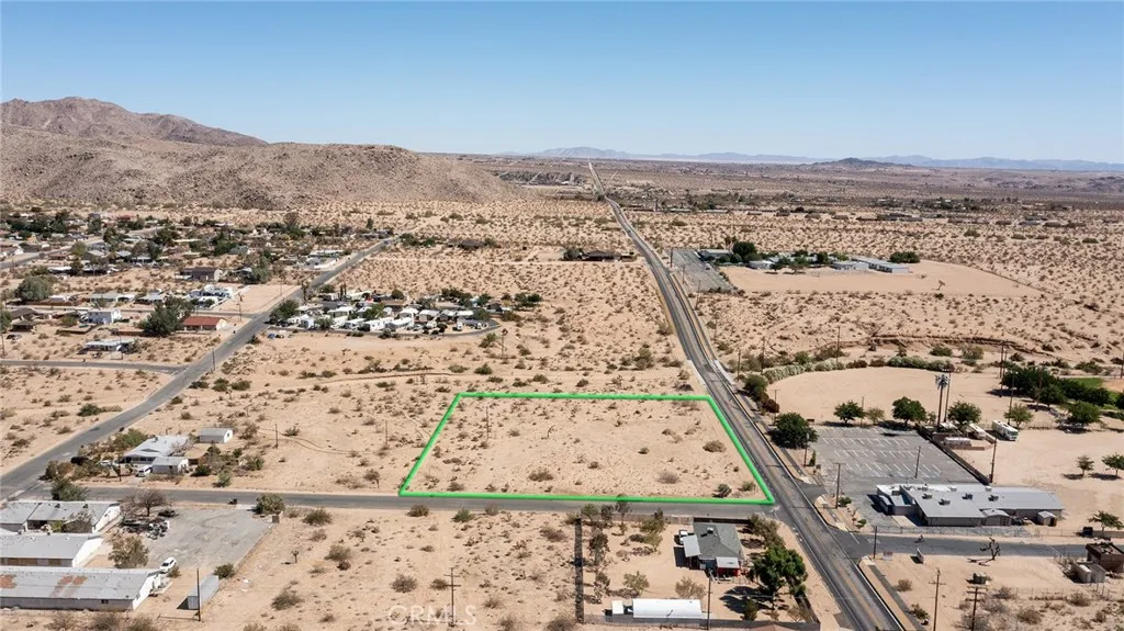 Located directly across the street from the Sportsmans Club of Joshua Tree and Autocamp Joshua Tree. Parcel has access to water and electricity. Per Seller, property can be used to build a multi-plex (buyer to investigate with SB County). Seller will carry a note: $59k Down Payment, then seller will carry a $100k @ $2,000 payments per month, interest @ 7.42% amortized over 5 Yrs, but complete Balloon Payment is due in 2 Years. Green lines demarcating boundaries are approximate; street address is not official – do not use to GPS to property. Locate with APN: 0603-271-06