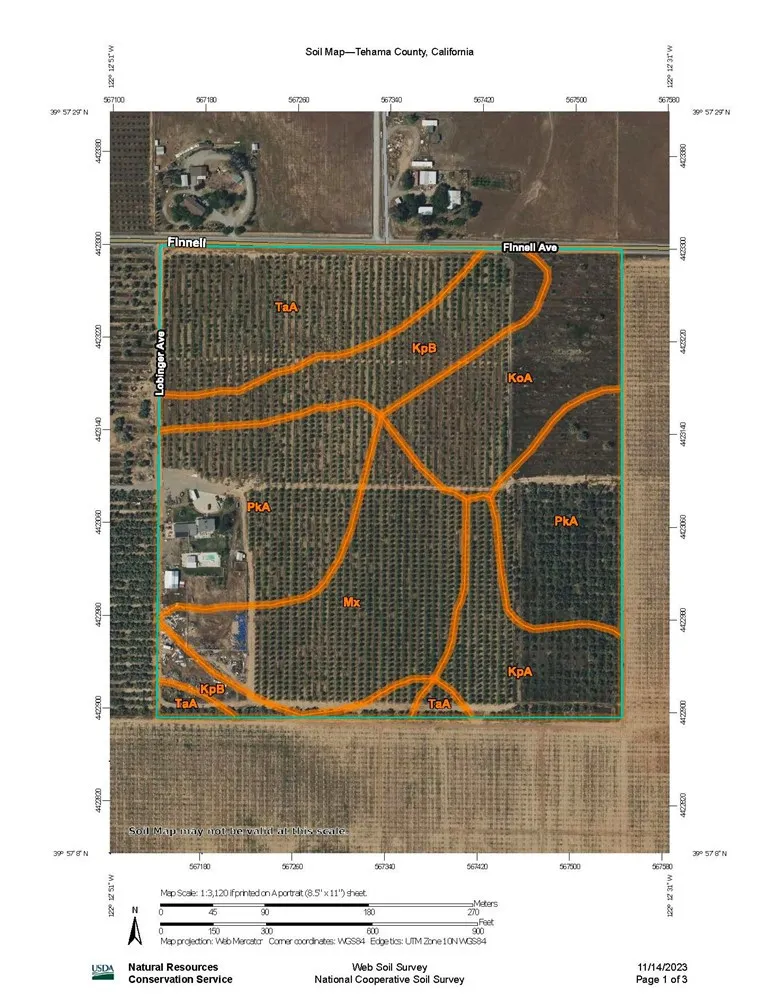 Currently there is 25 acres of 6-leaf almonds (Non-Pareil Variety with Krymsk Root-stock) all on micro-sprinklers. Plus 9+ acres of Manzanillo Olives with good soil and water.
