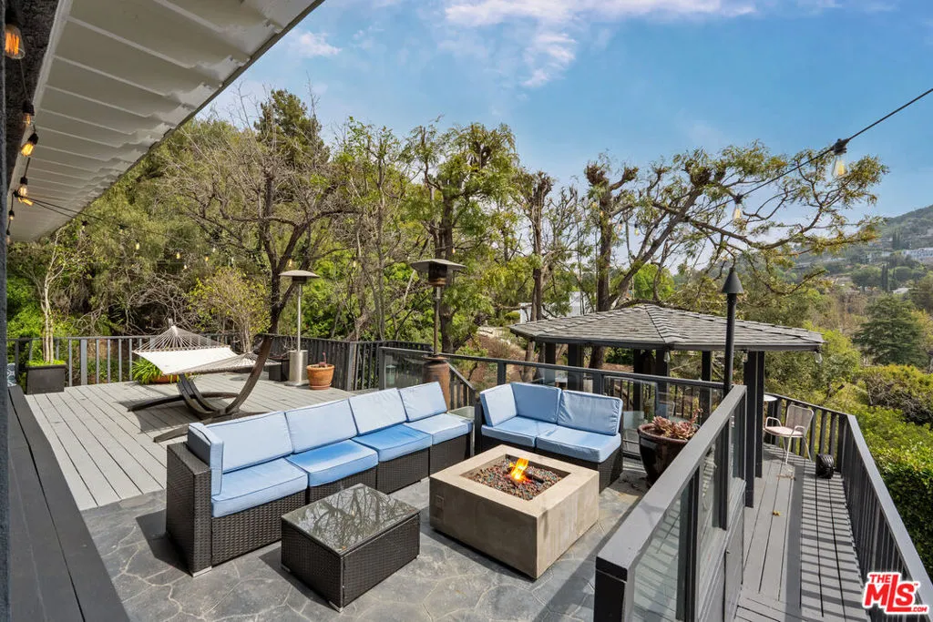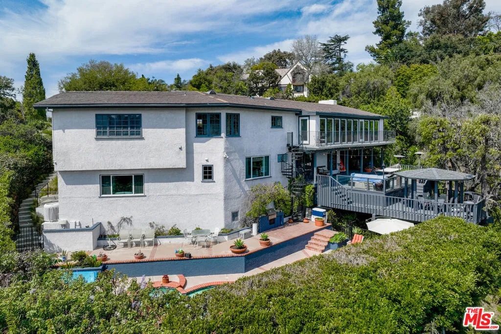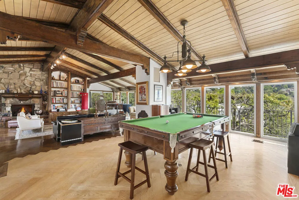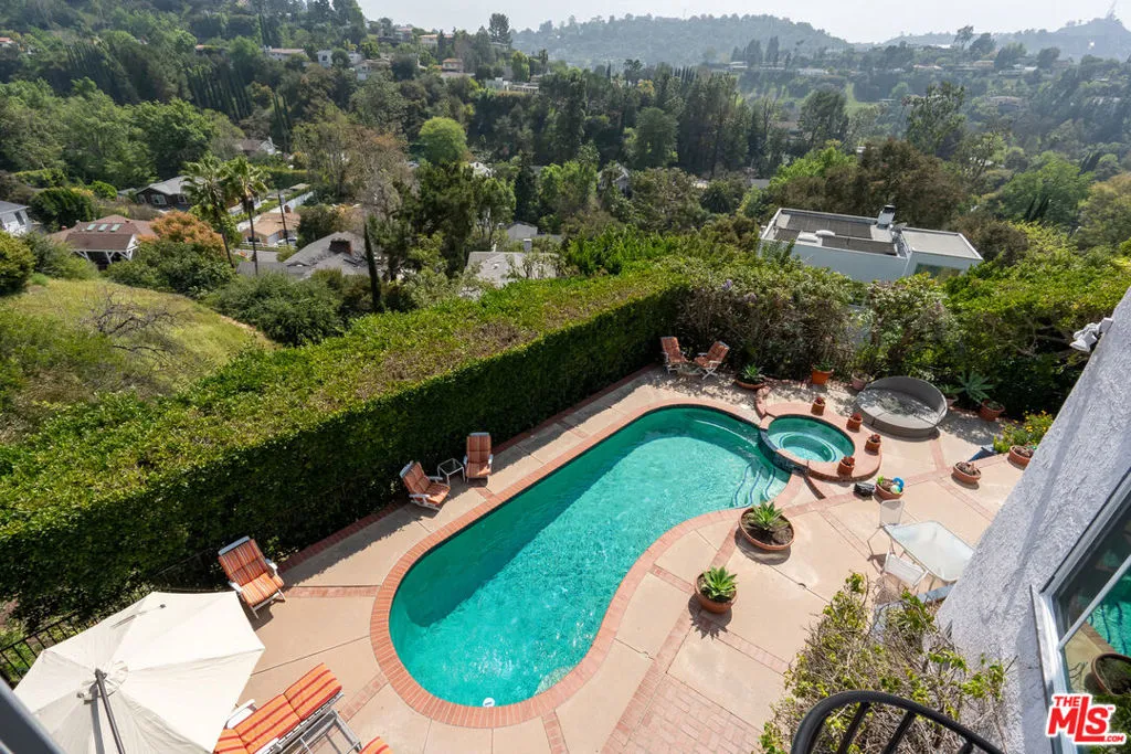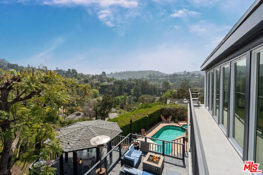 South of Ventura Blvd, nestled in the coveted Berry Hilltop Community of the Studio City hills, you will find 3537 Berry Drive, a fully furnished 4 bed, 4 bath character home with canyon views from every room that is equally suited for entertaining as it is for relaxation and creativity. Upon entering the recently refreshed home, you are immediately greeted by the living/dining area’s vaulted ceiling, exposed beams and wall of new windows overlooking the sun-drenched backyard and lush hillside beyond. The large great room features a hand-carved fireplace, antique grand piano, multiple seating areas and a pool/snooker table that doubles as a dining table fit for 14. Past a hallway full bathroom is the wood-paneled media room with English pub doors, built-in bar, and 84″ screen with a new 4k HD projector and surround sound. The bright, eat-in kitchen completes the first floor and comes fully stocked with dinnerware, pots/pans, etc. Down the impressive staircase are three bedrooms and two full bathrooms as well as the primary suite featuring a fireplace, walk-in closet, and separate vanity area, all with access to the outside. The south facing backyard has a large multi-level deck with a breezy gazebo, fire pit, and outdoor gym, all overlooking the totally private heated swimming pool, spa and built-in BBQ. When not enjoying all that the home has to offer, you’ll have easy access to the work, dining and shopping options in the valley and just through Laurel Canyon to West Hollywood and beyond, while elementary aged kids can potentially attend nearby Carpenter Community Charter School. Just bring your bags and enjoy that Hollywood Hills lifestyle.